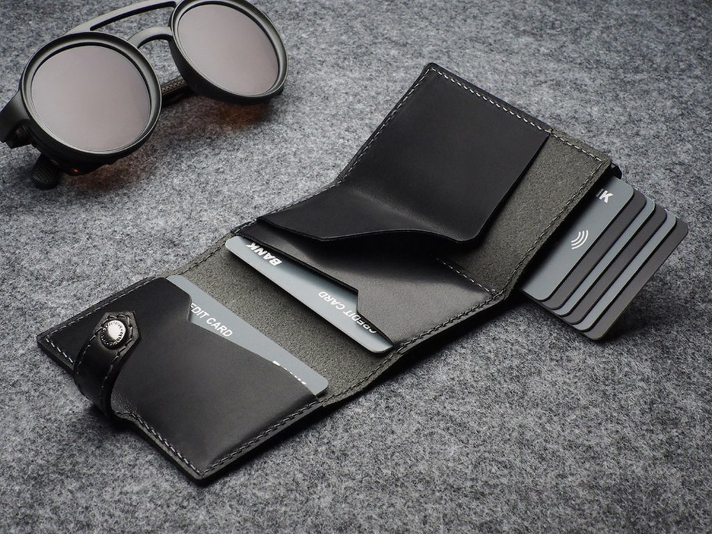Vyrobena je z odolné kůže Hunter, jejíž povrch byl vyleštěn, napuštěn speciálním olejem a nakonec potažen voskem. To vše umožňuje peněžence zestárnout a dosáhnout přirozeného vzhledu. Dvě snadno přístupné kapsy dokonale uspořádají dokumenty, karty nebo vizitky. Dalším prvkem je jedinečná přihrádka na bankovky.