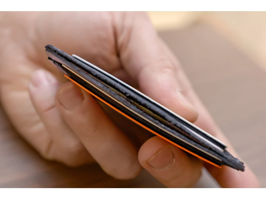 Cardholder má po stranách dvě přihrádky s výřezem pro snadný přístup ke kartám (ID formát). Uvnitř se nachází prostor vhodný například pro složené bankovky. Celkově pojme přibližně 5–8 karet.