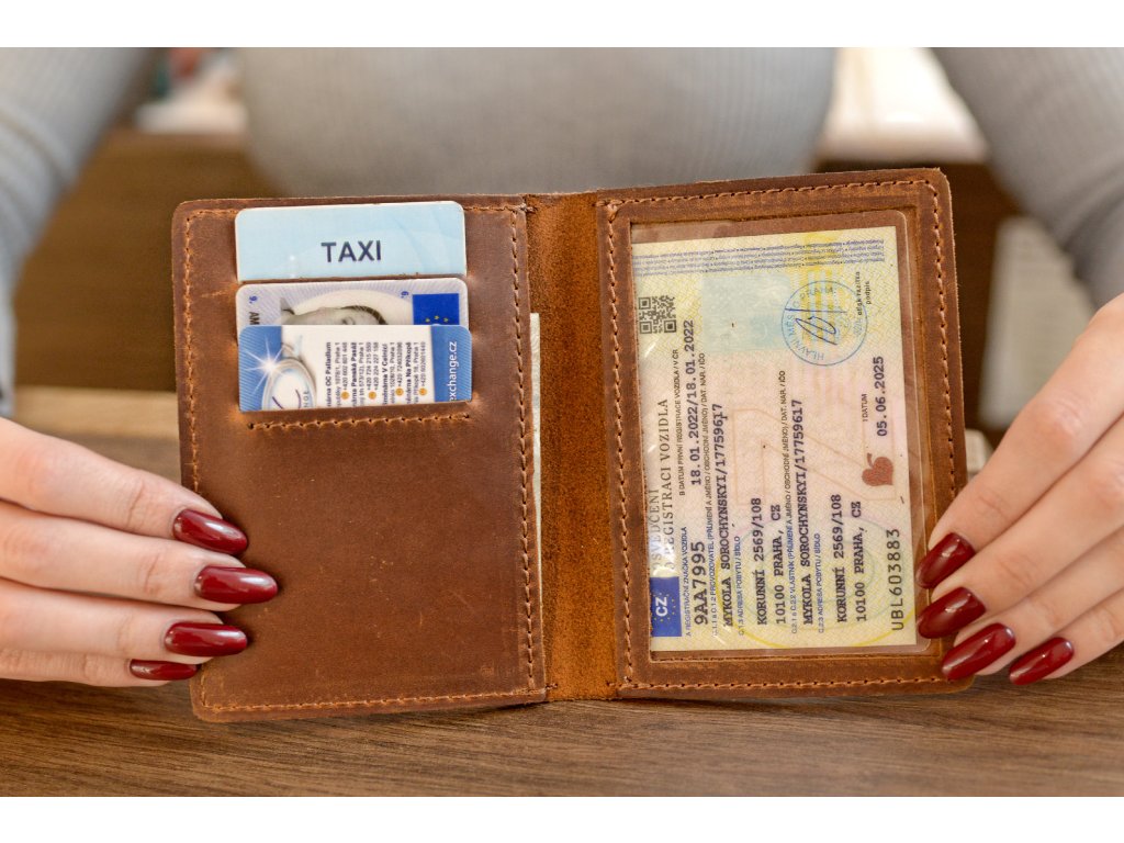 Na levé straně se nacházejí tři přihrádky na plastové karty formátu ID (například řidičský průkaz, pojištění nebo Karta pro přístup na parkoviště letiště). Pod kartami je umístěna skrytá kapsa, vhodná pro složené bankovky nebo doplňkové dokumenty. Pravá strana obsahuje průhledné okénko, které je vhodné pro technický průkaz vozidla.