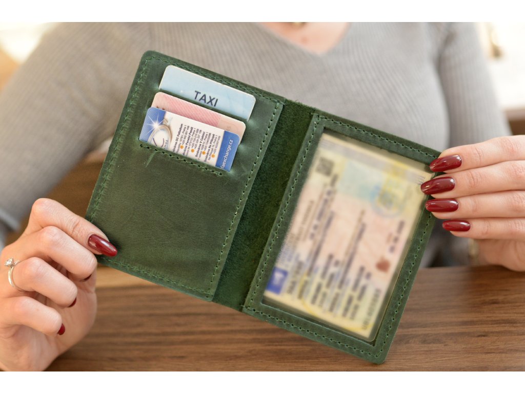 Na levé straně se nacházejí tři přihrádky na plastové karty formátu ID (například řidičský průkaz, pojištění nebo Karta pro přístup na parkoviště letiště). Pod kartami je umístěna skrytá kapsa, vhodná pro složené bankovky nebo doplňkové dokumenty. Pravá strana obsahuje průhledné okénko, které je vhodné pro technický průkaz vozidla.
