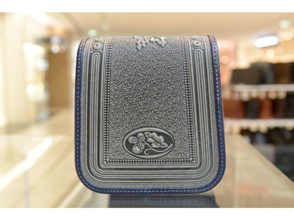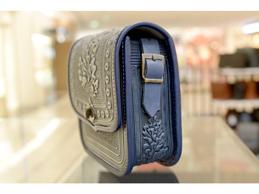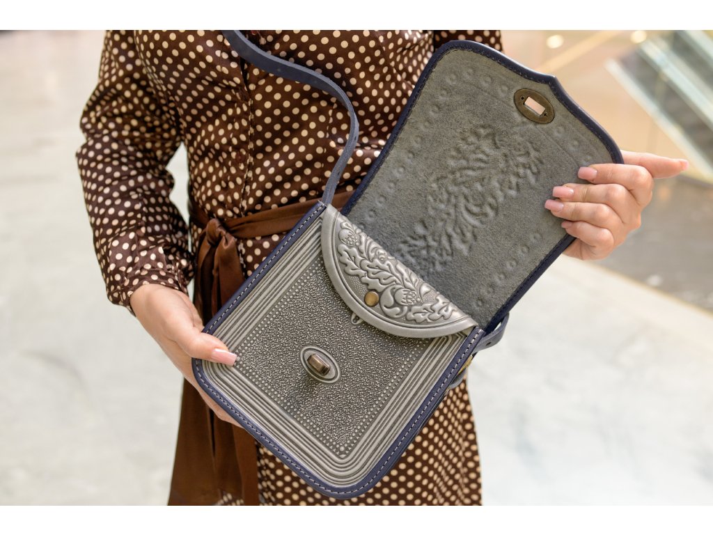 Kabelka "DUB M". Opasková kůže šedá/tm.modrá