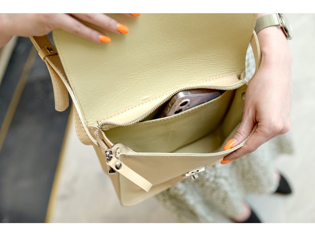 Kabelka přes rameno "OKSI". Kůže "Kaiser". Béžová