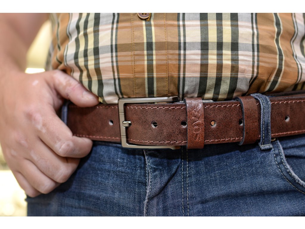 Kožený pásek Premium (36-40 mm). Spona 002. Prošité. Opaskova kůže hnědá