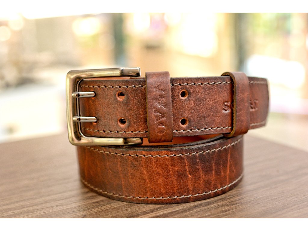 Kožený pásek Premium (36-40 mm). Spona 004. Prošité. Opaskova kůže rezavá
