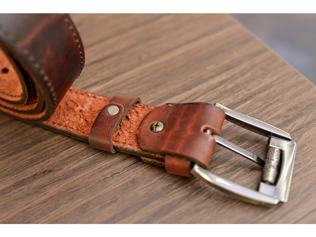 Kožený pásek Premium (36-40 mm). Spona 005. Prošité. Opaskova kůže rezavá