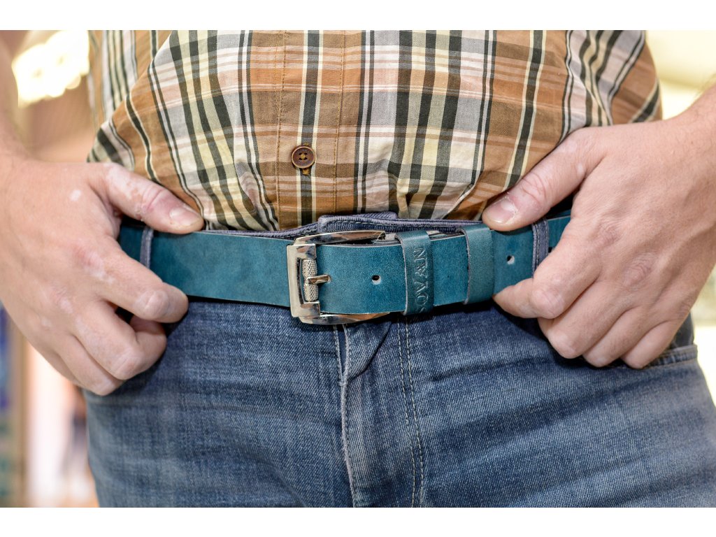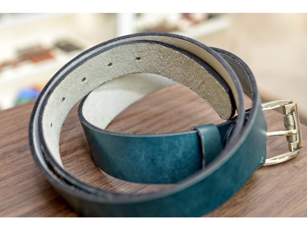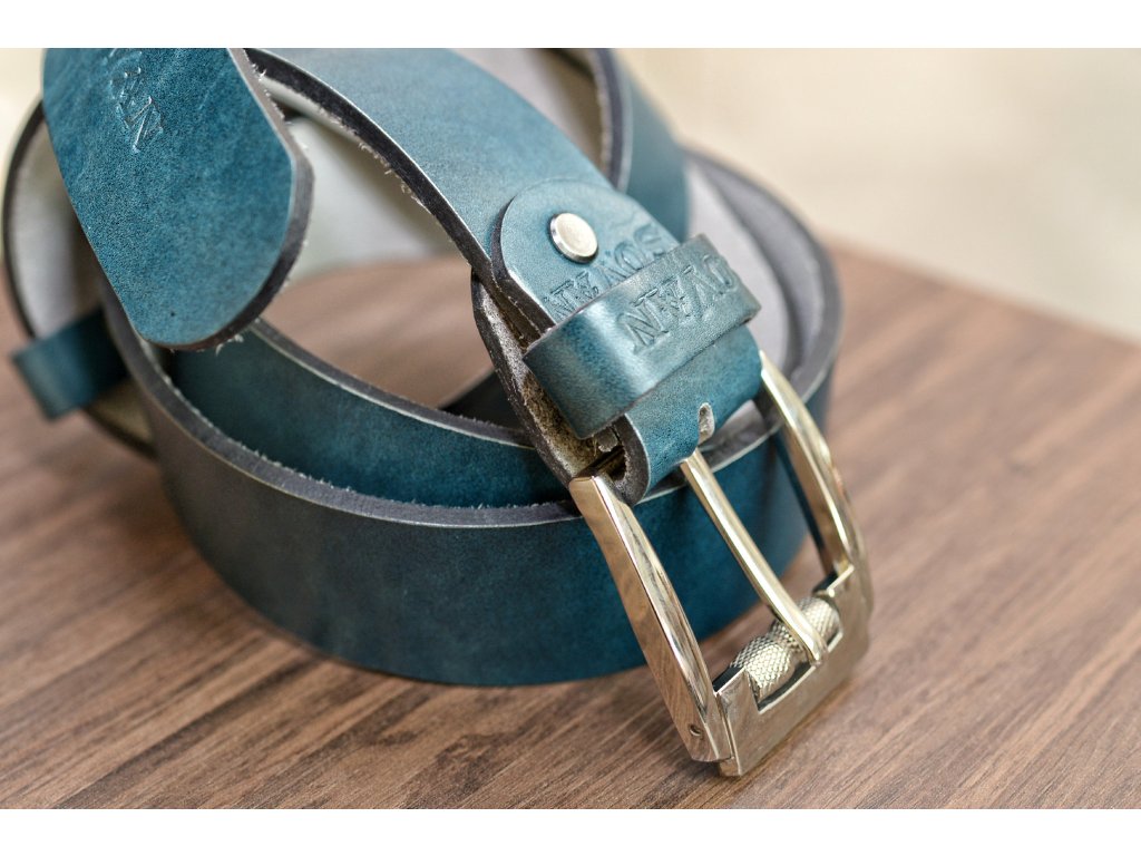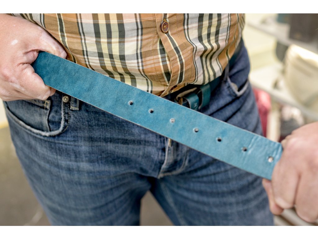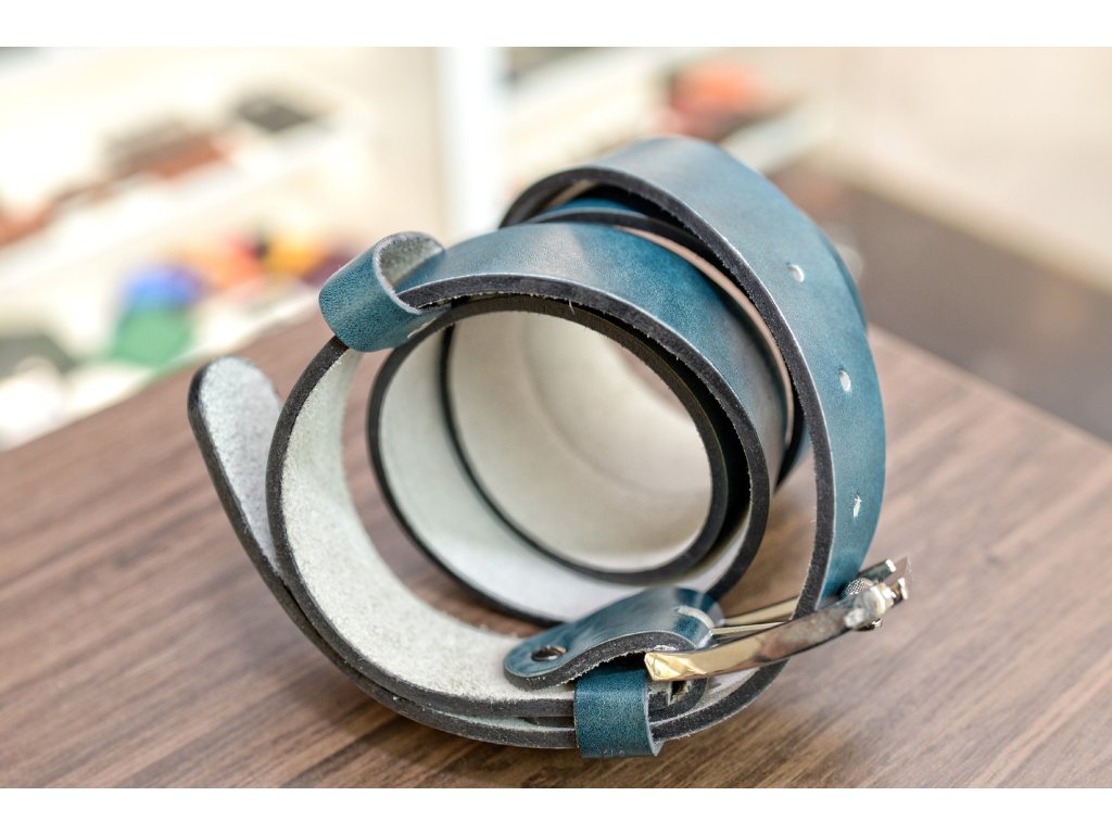 Kožený pásek Premium (36-40 mm). Spona 006. Opaskova kůže modrá