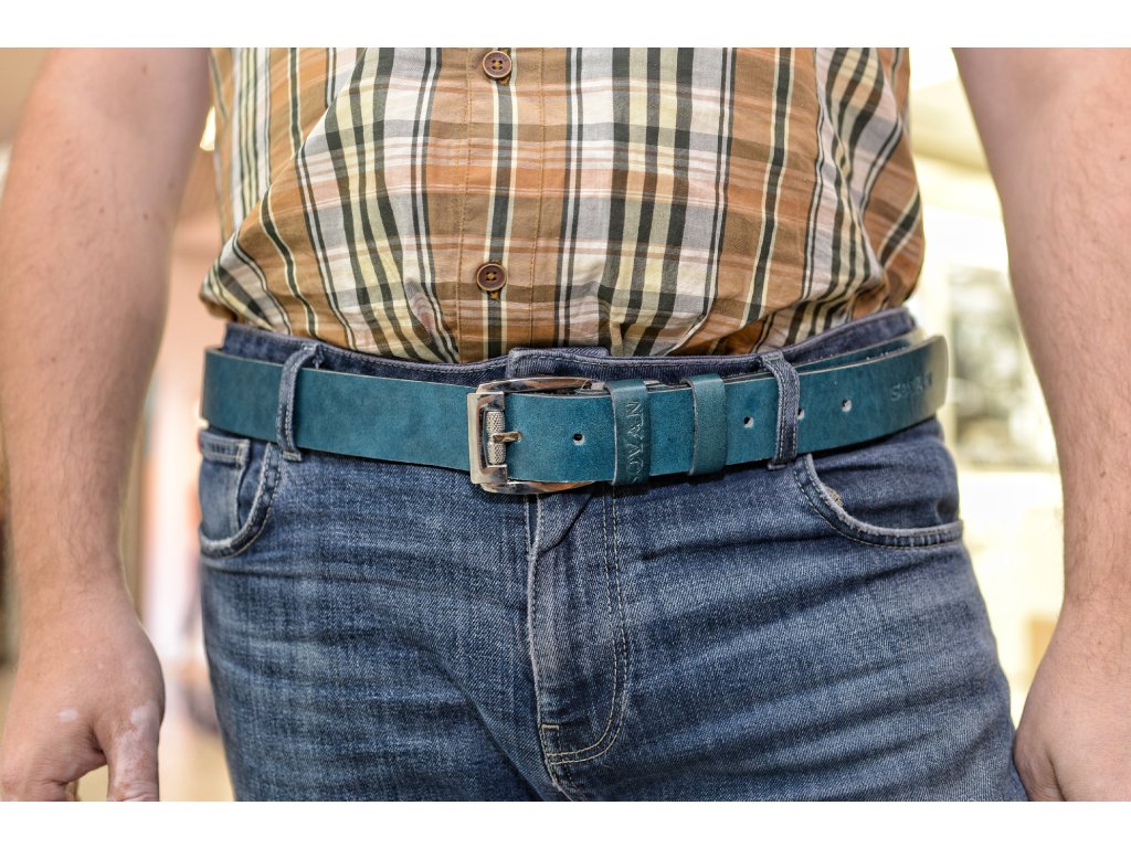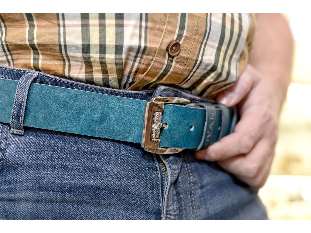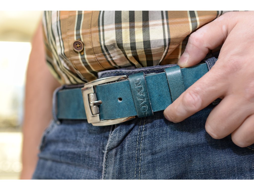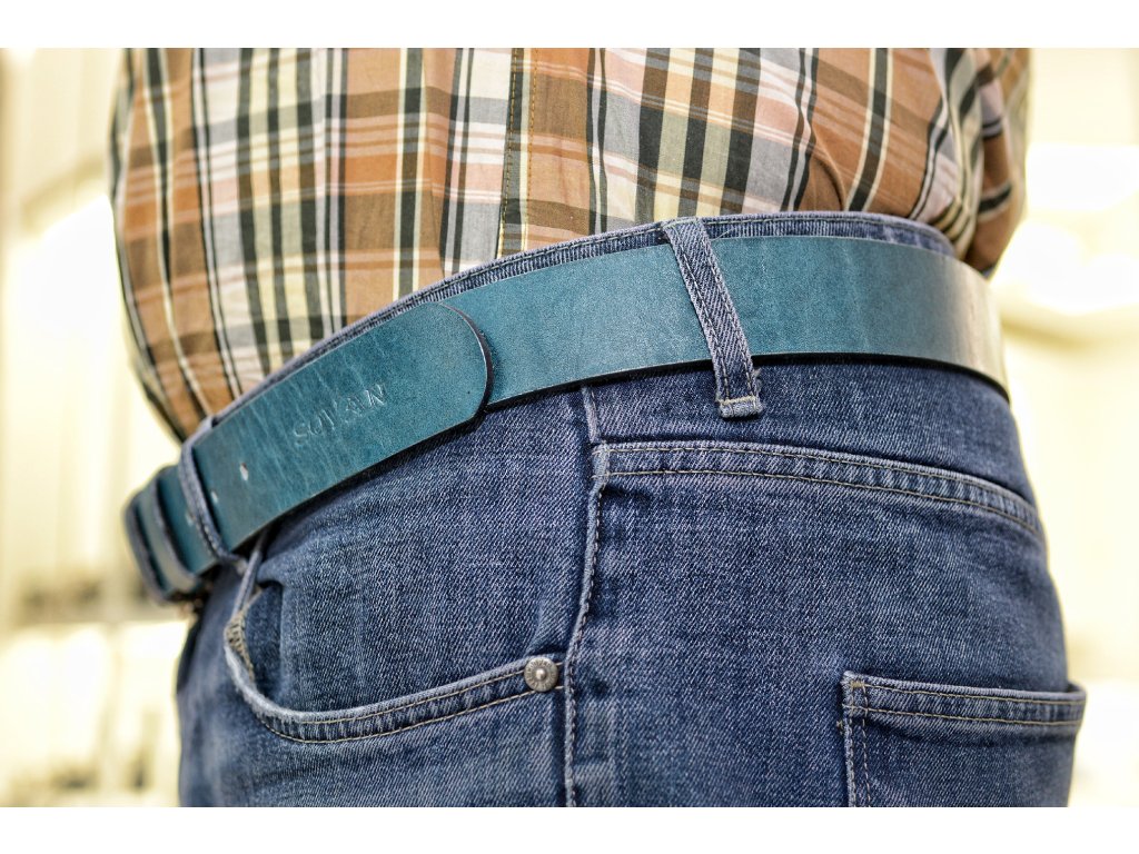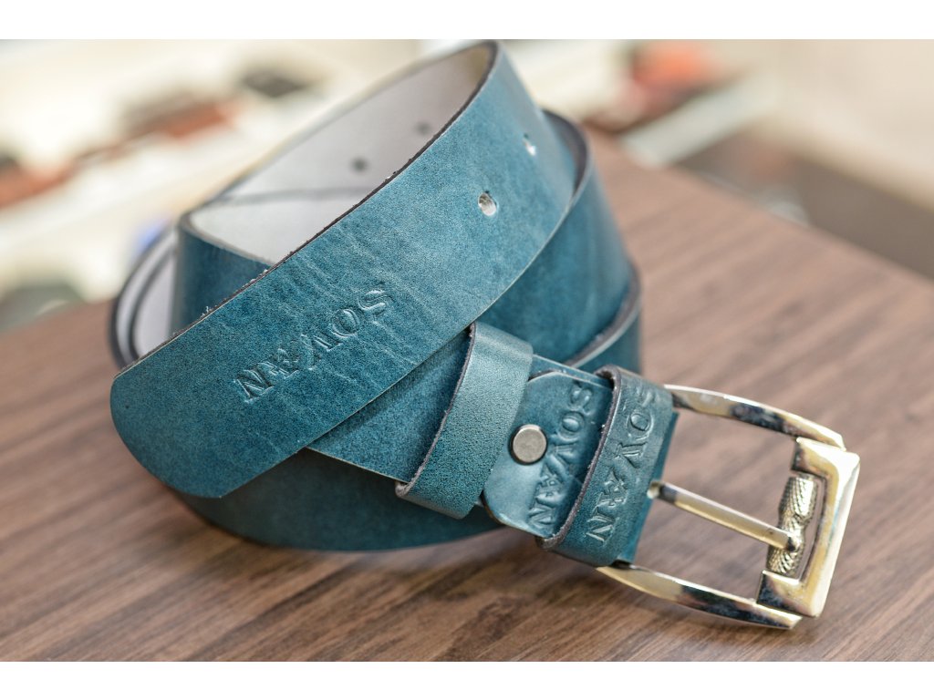 Kožený pásek Premium (36-40 mm). Spona 006. Opaskova kůže modrá
