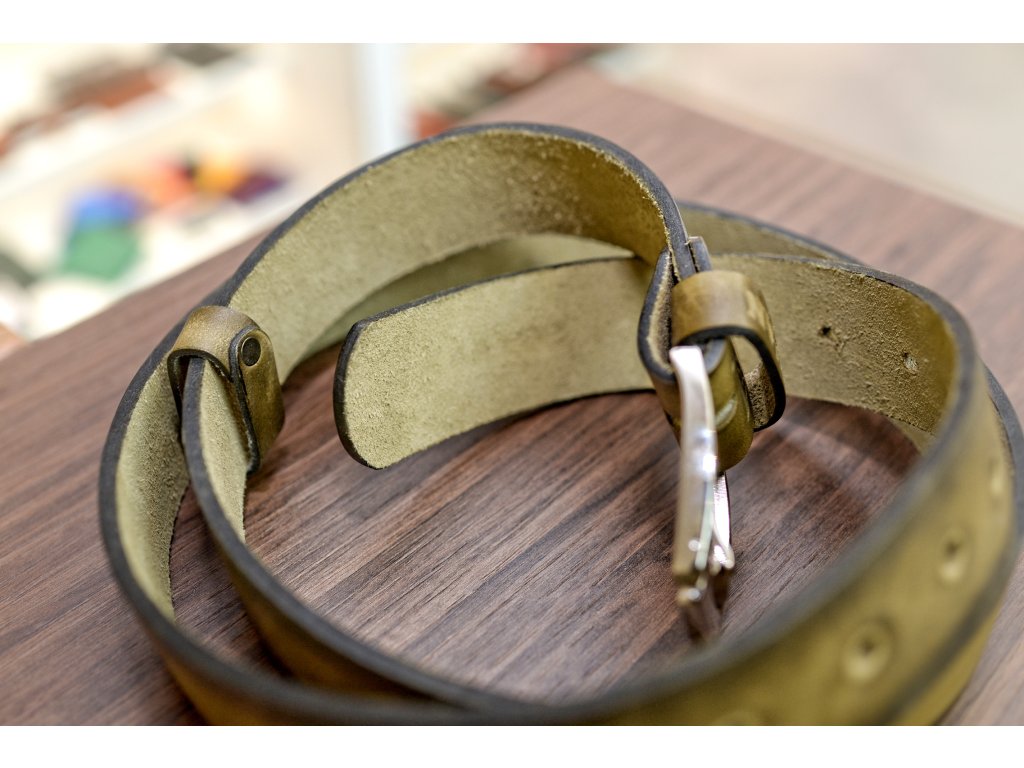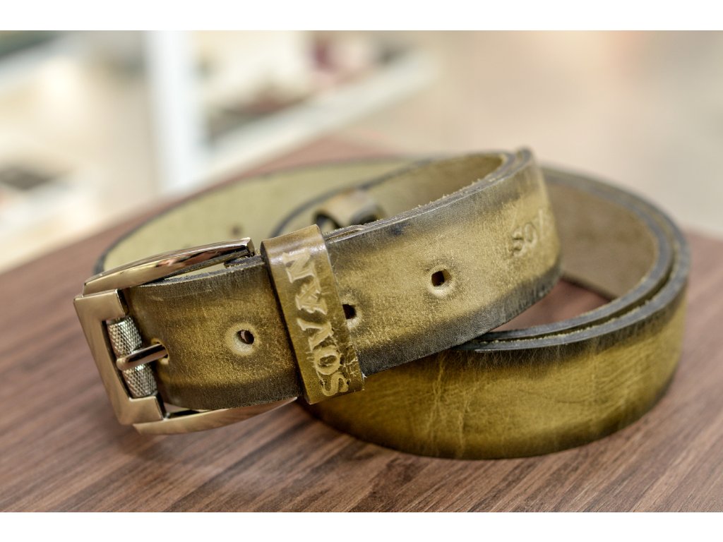Kožený pásek Premium (36-40 mm). Spona 006. Opaskova kůže Olivová s tmavým okrajem