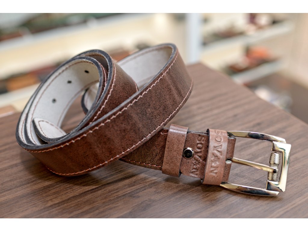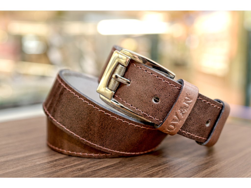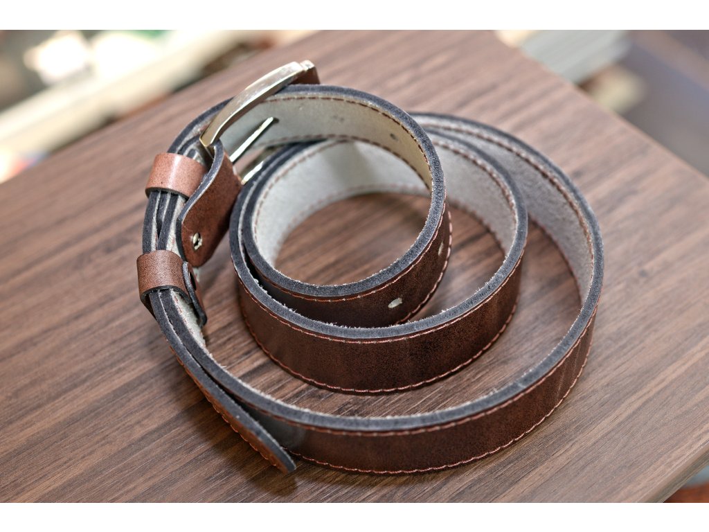 Kožený pásek Premium (36-40 mm). Spona 006. Prošité. Opaskova kůže hnědá