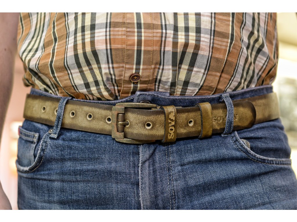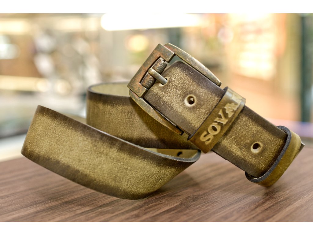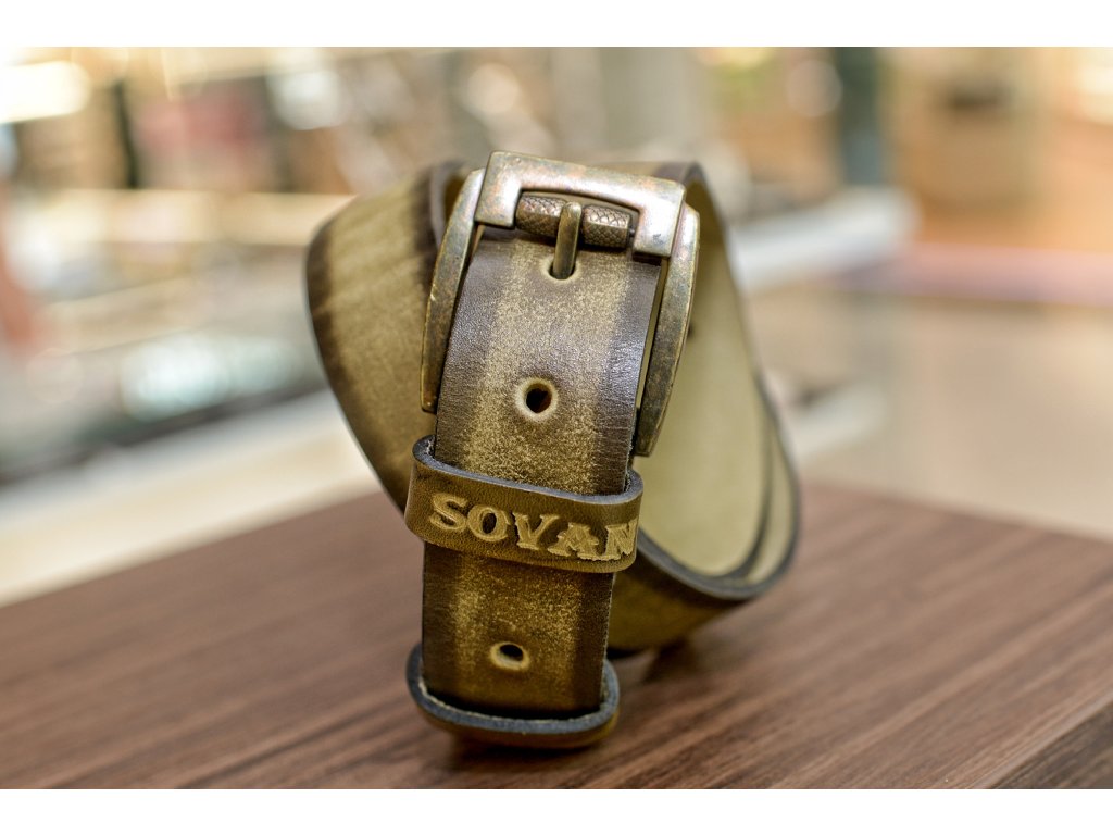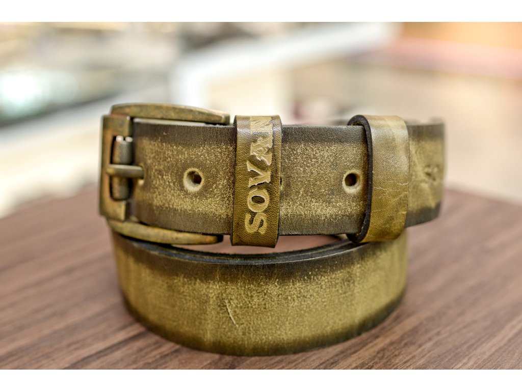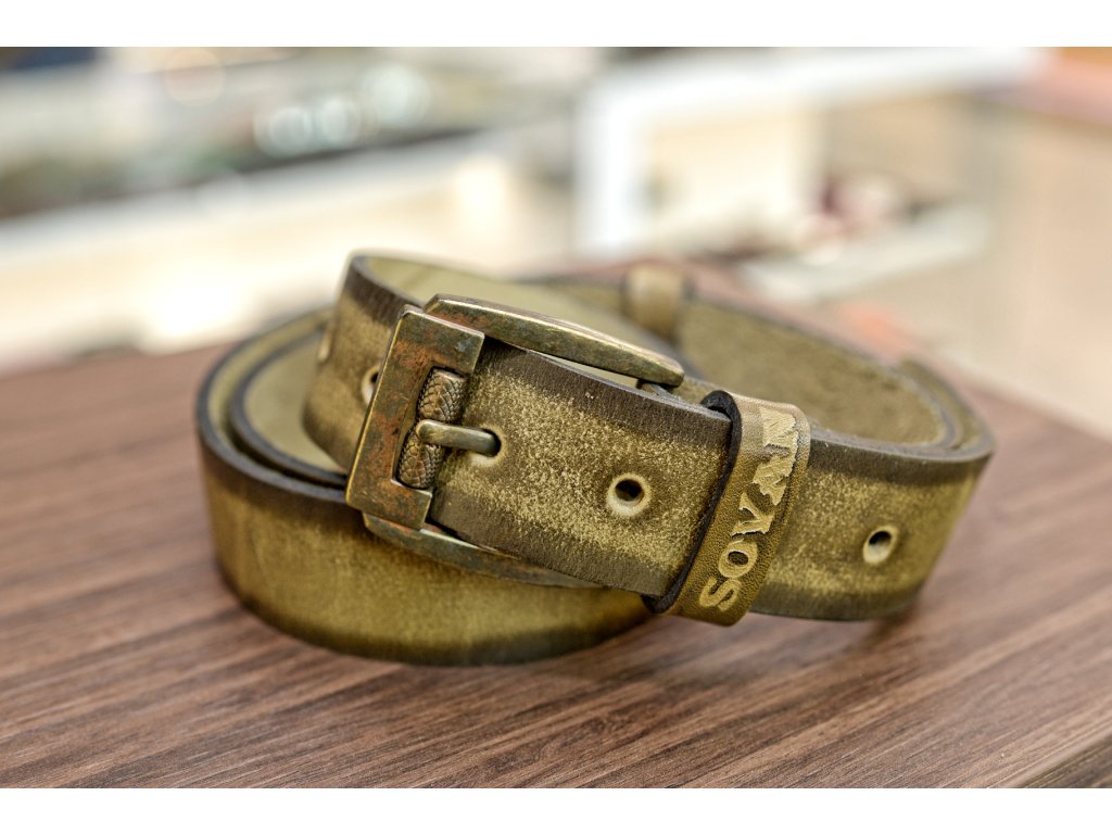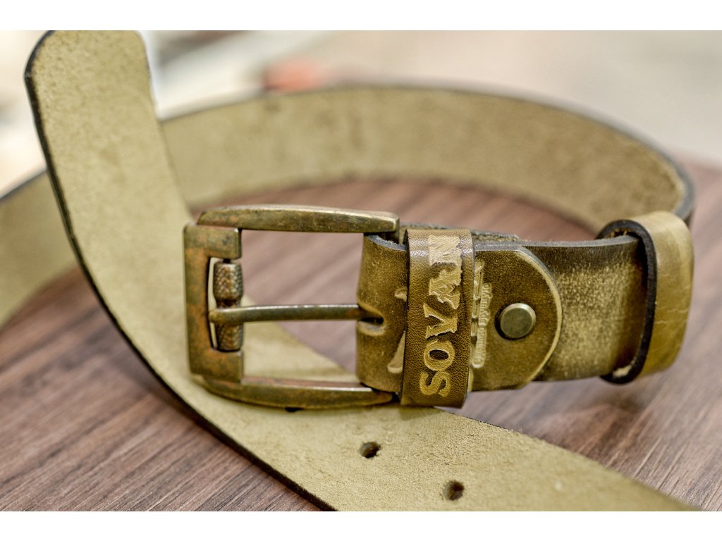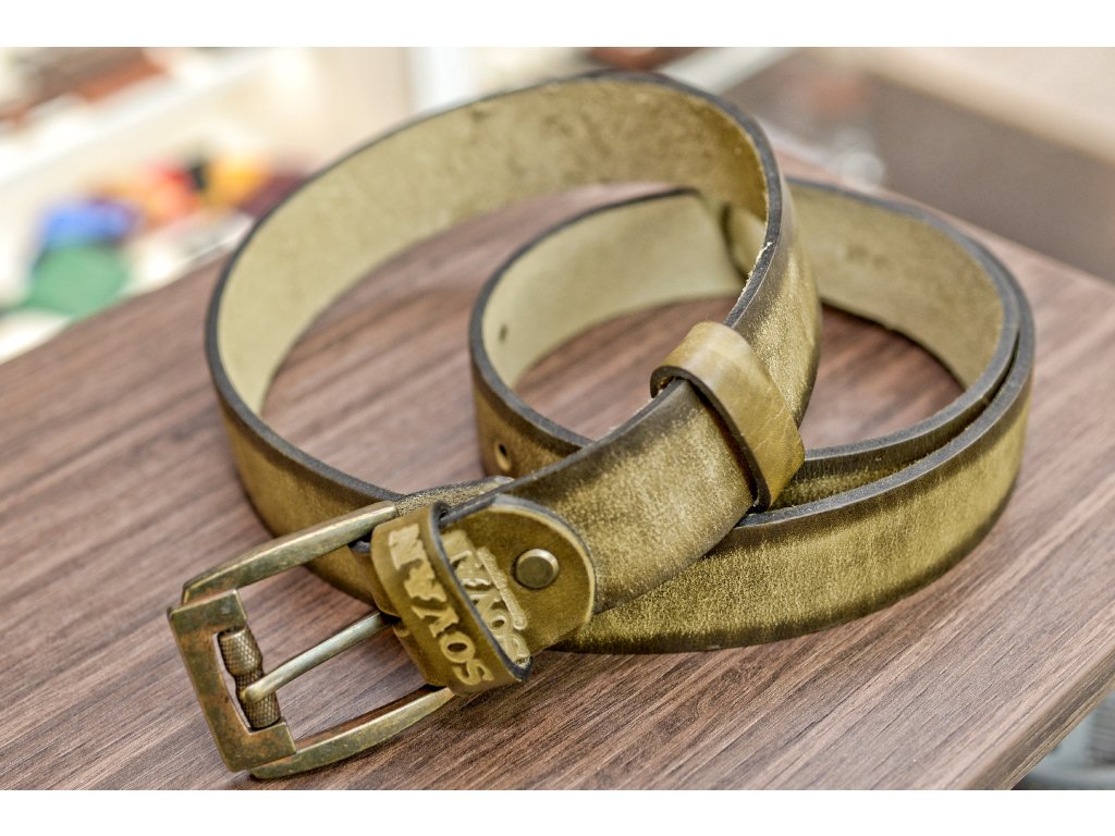 Kožený pásek Premium (36-40 mm). Spona 005. Opaskova kůže Olivová s tmavým okrajem