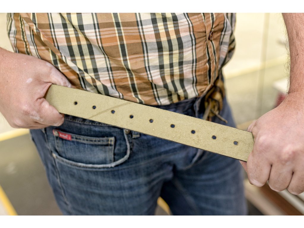 Kožený pásek šířky 38 mm z pevné hovězí kůže – ručně vyráběný a odolný. Tloušťka pásku přibližně 4 mm (±0,5 mm v závislosti na konkrétní partii kůže). Vyroben z nejpevnější části hovězí kůže – hřbetního řezu, což zaručuje dlouhou životnost a vysokou odolnost proti opotřebení. Univerzální šířka 38 mm je ideální pro džínové i casual kalhoty a kombinuje pevnost s elegantním vzhledem. Každý pásek je ručně zpracovaný, precizně dokončený a nabízí přirozenou strukturu kůže s patinou, která se s časem jen zlepšuje.