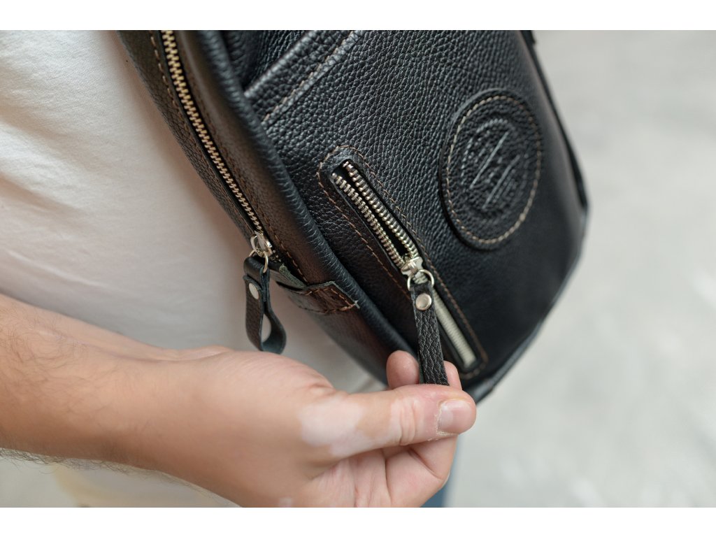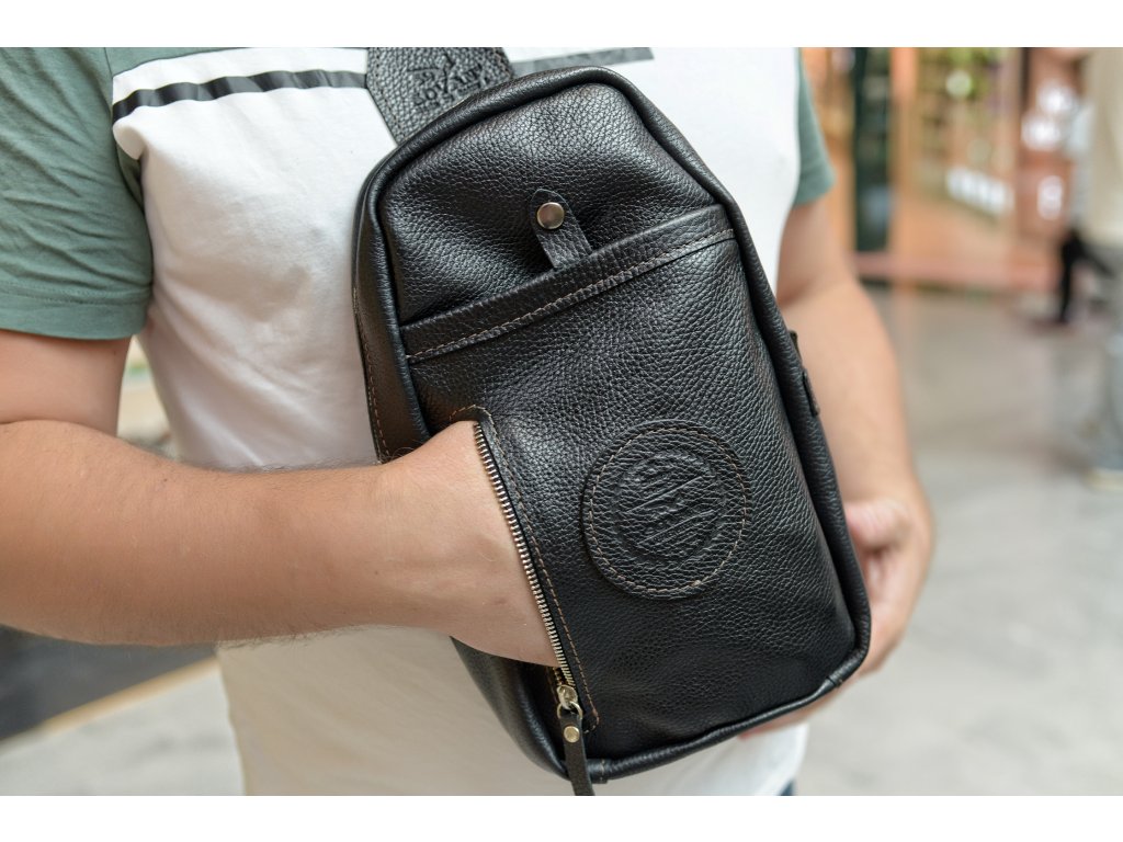 Stylová kožená náprsní taška z přírodní kůže je odolná, elegantní a praktická. Nabízí několik kapes na zip i druk, prostorný hlavní oddíl a pohodlné nošení přímo před tělem. Díky kompaktním rozměrům nahrazuje batoh a je ideálním společníkem na každý den, cestování i městské procházky.