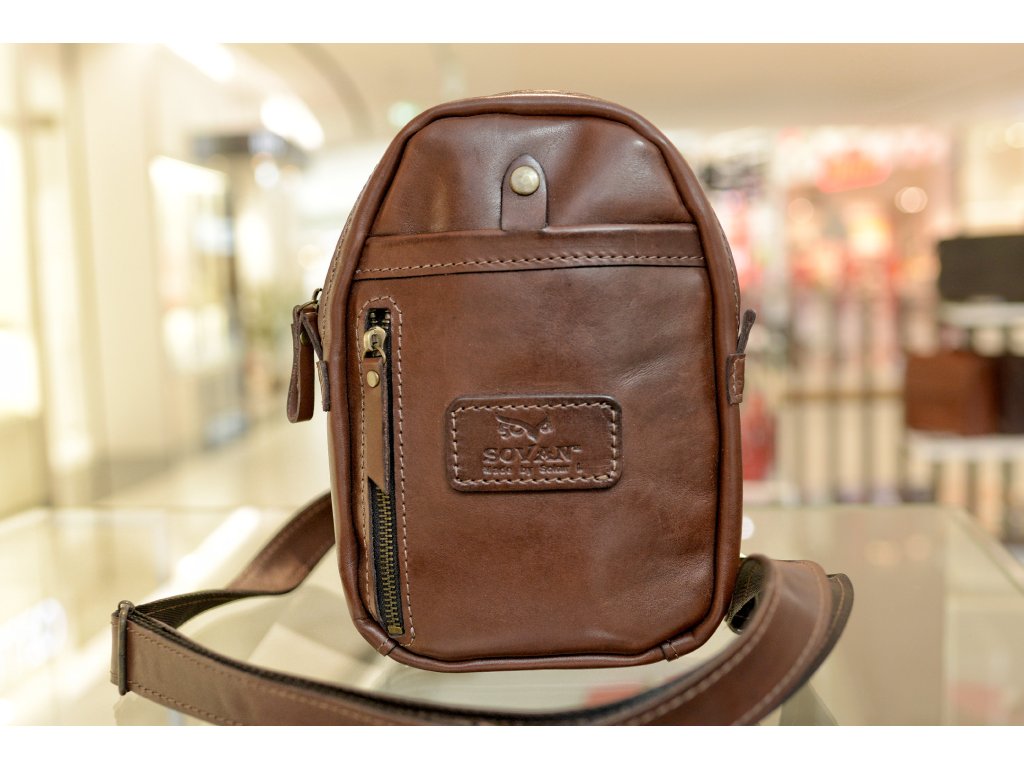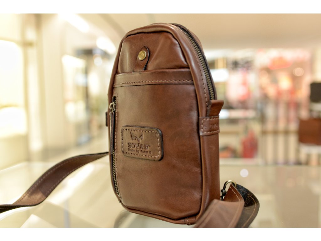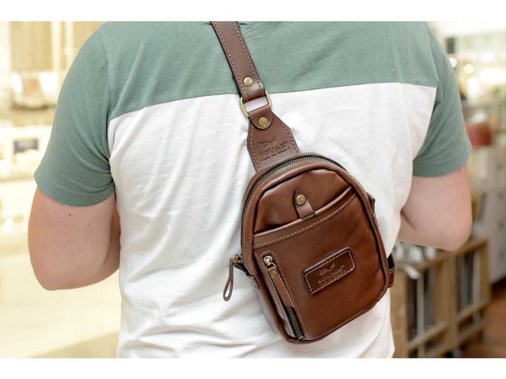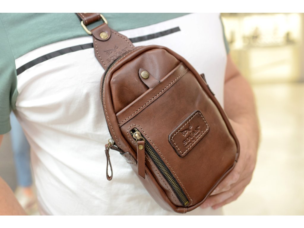 Náprsní taška "SoVan S". Kůže "KRAST" tm.rezavá