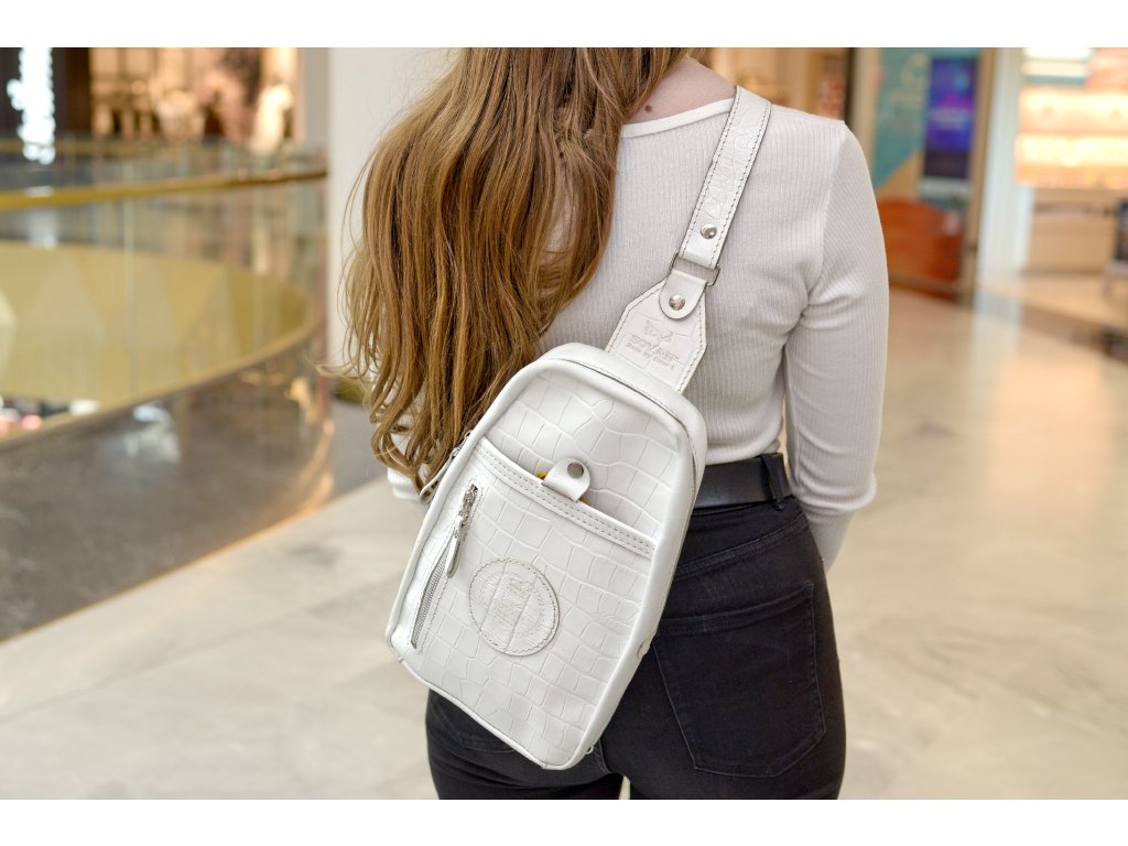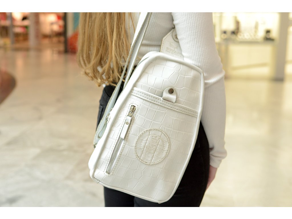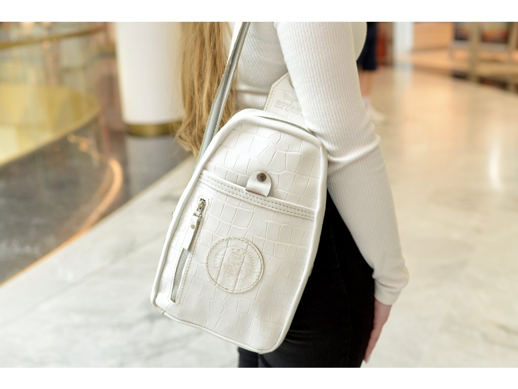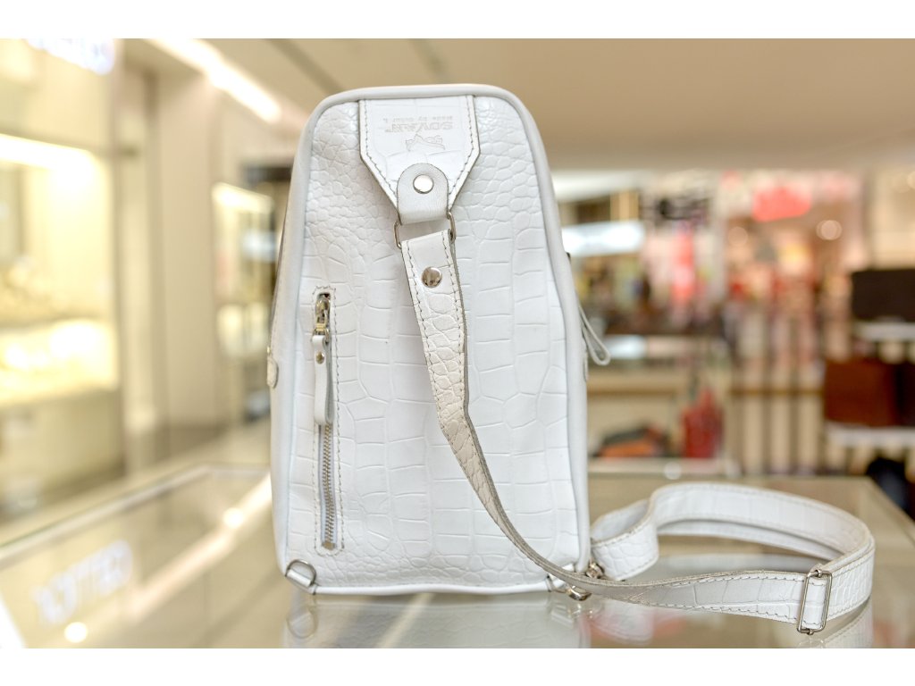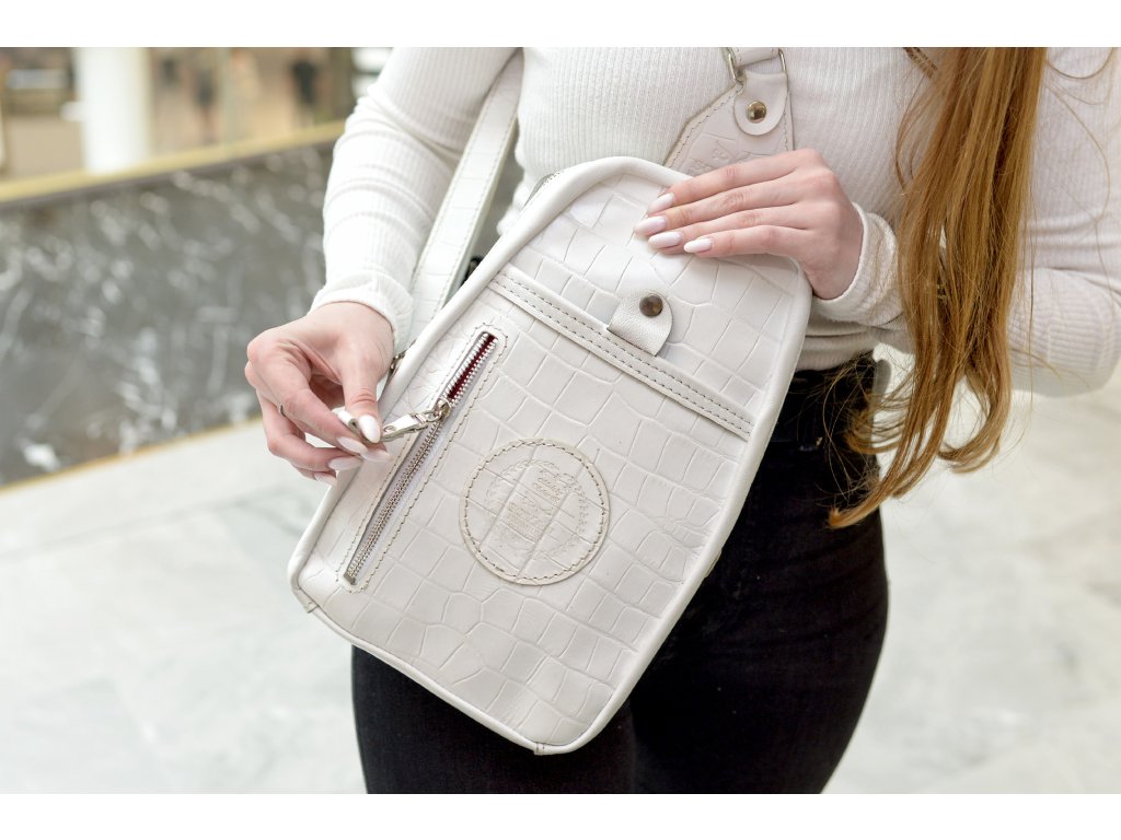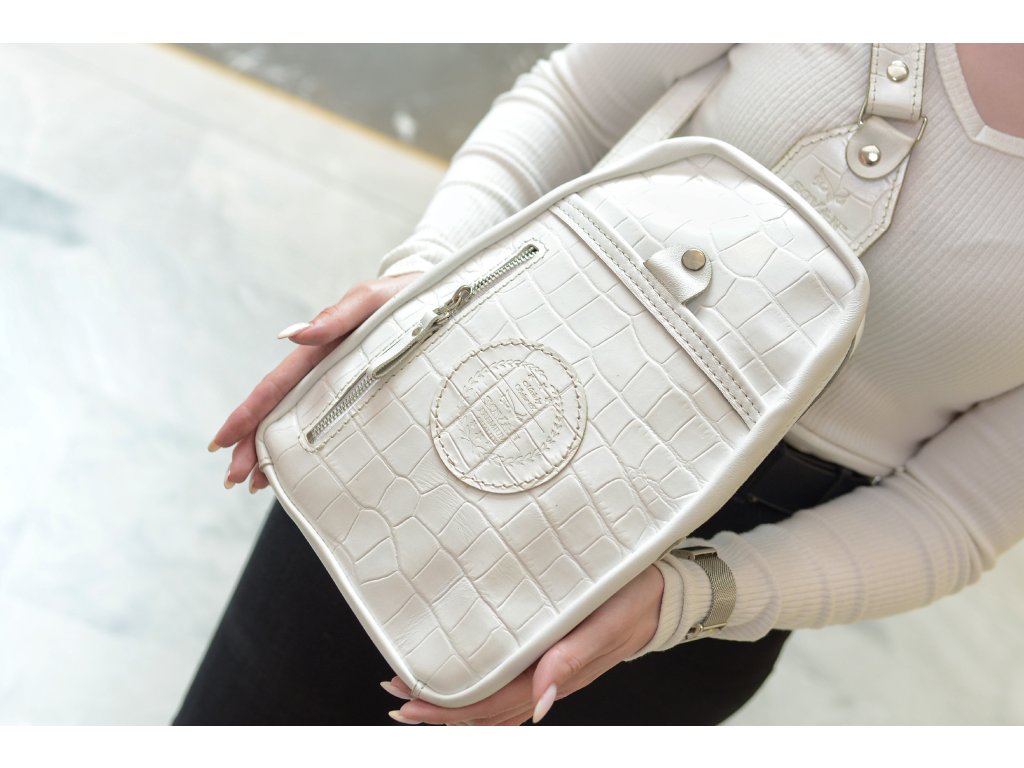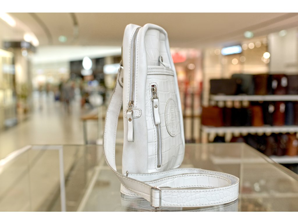 Náprsní taška "SoVan". Hovězí kůže "Krokodýl" bílá