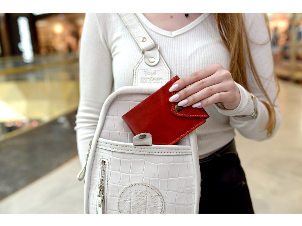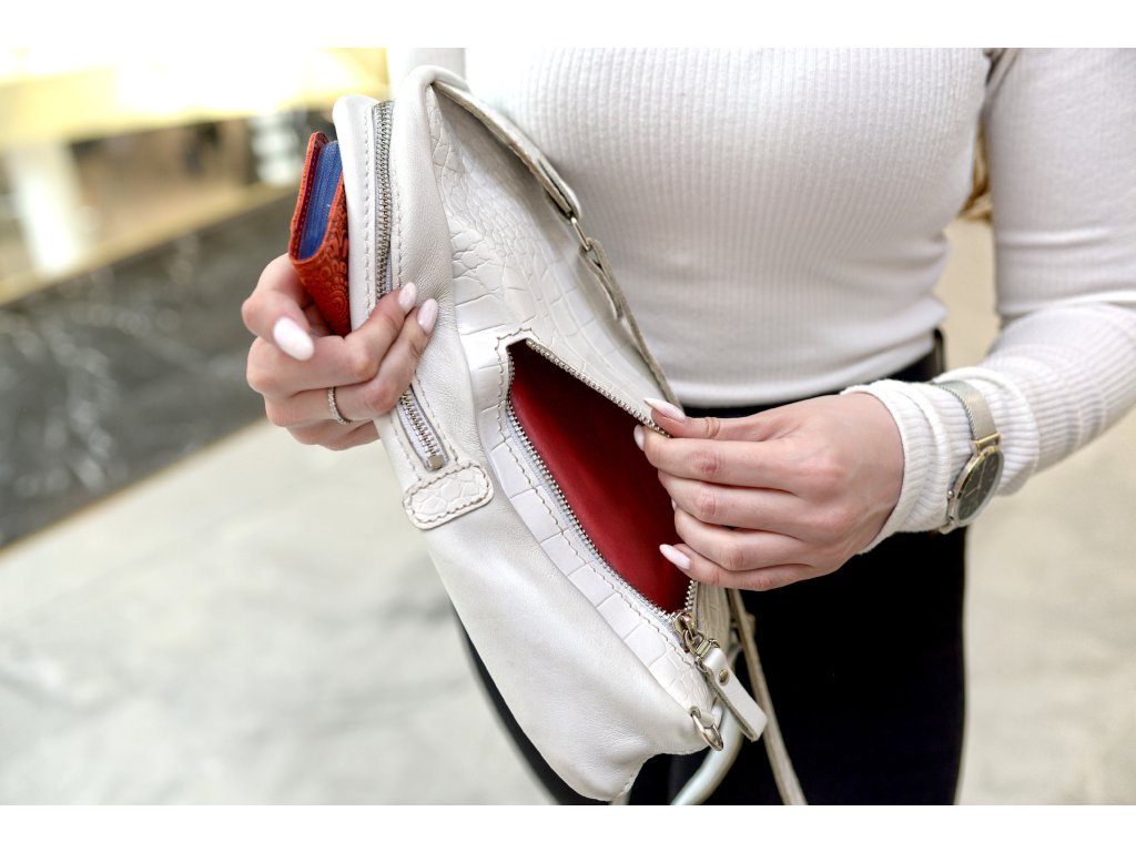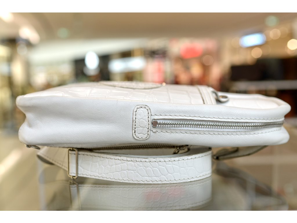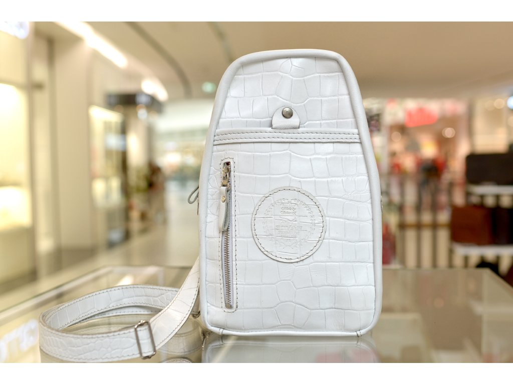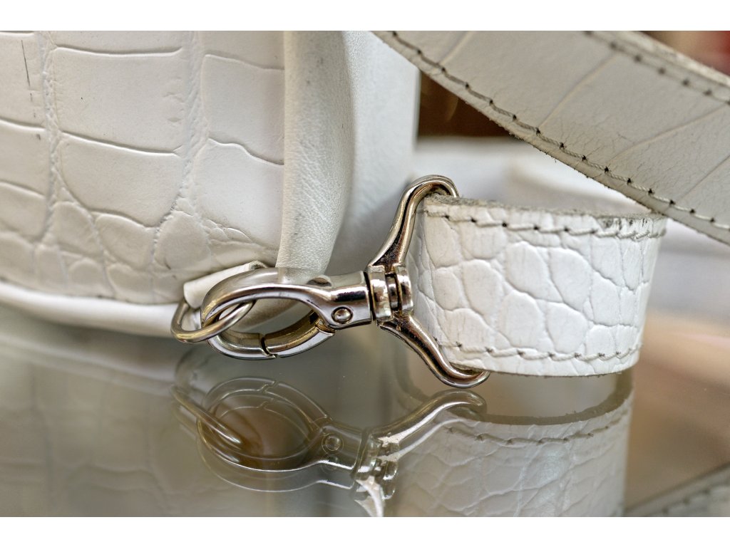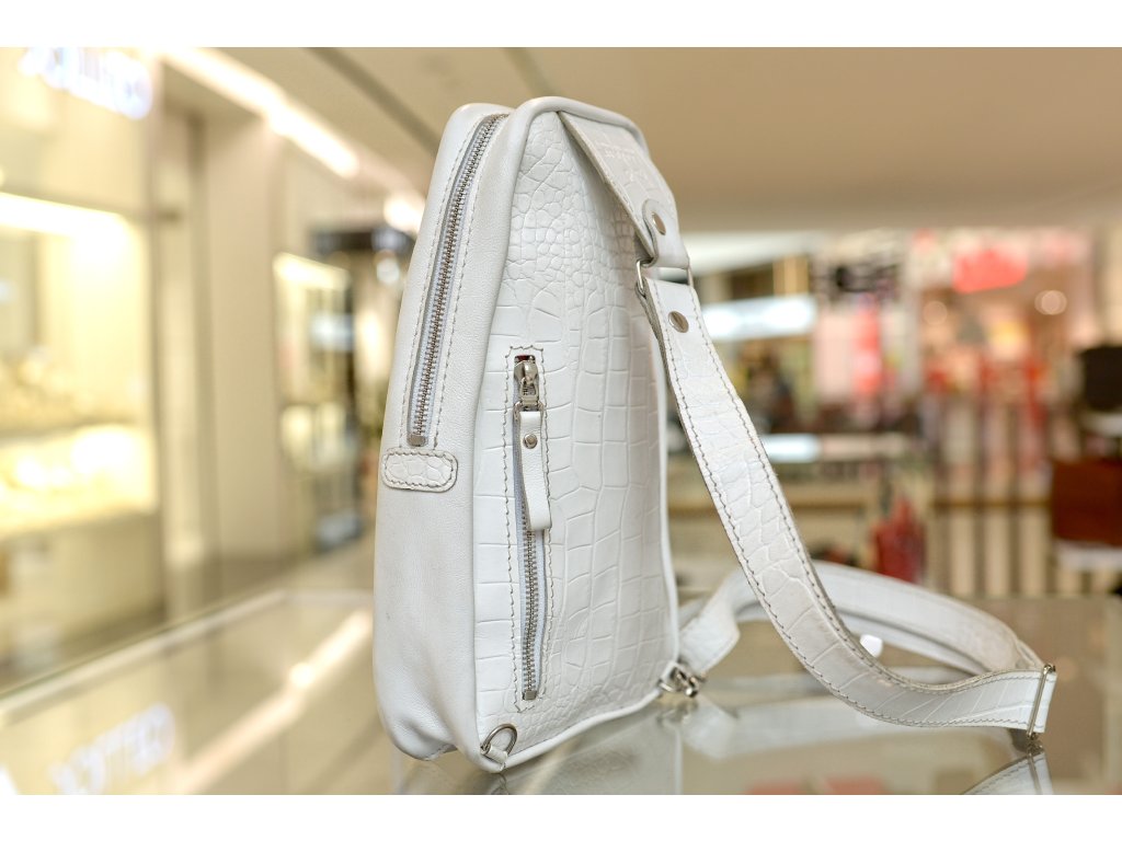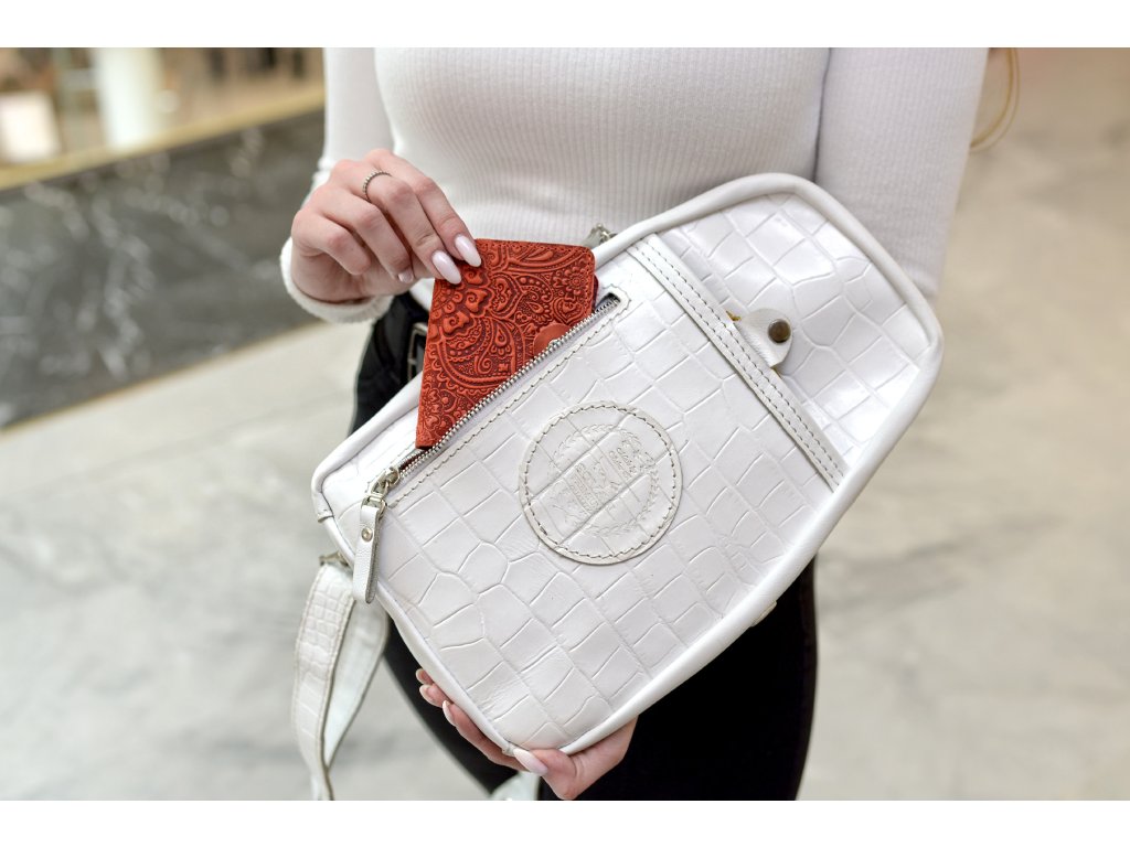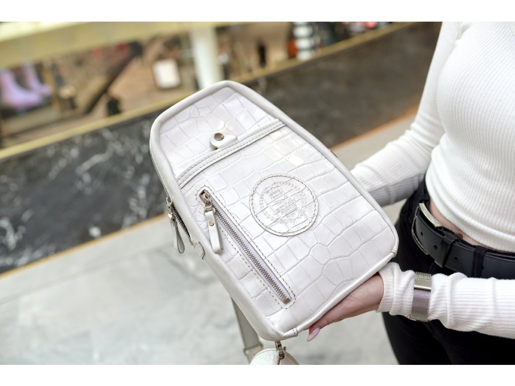 Náprsní taška "SoVan". Hovězí kůže "Krokodýl" bílá
