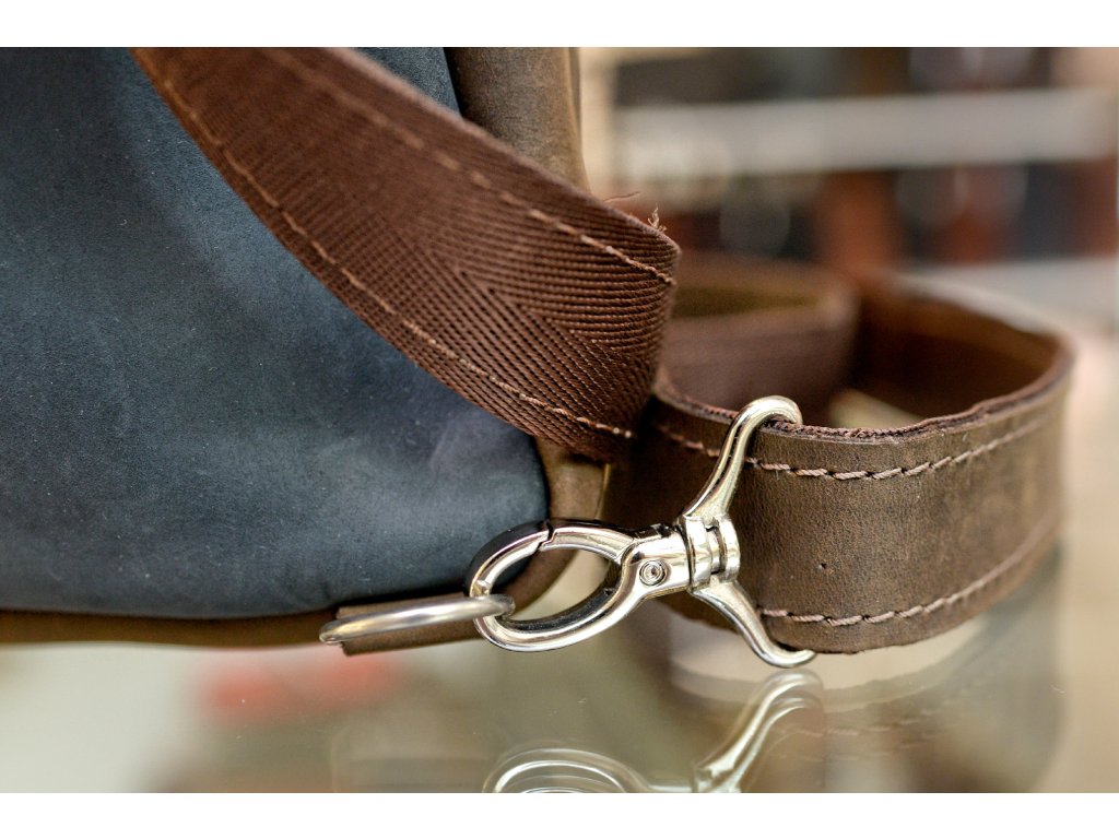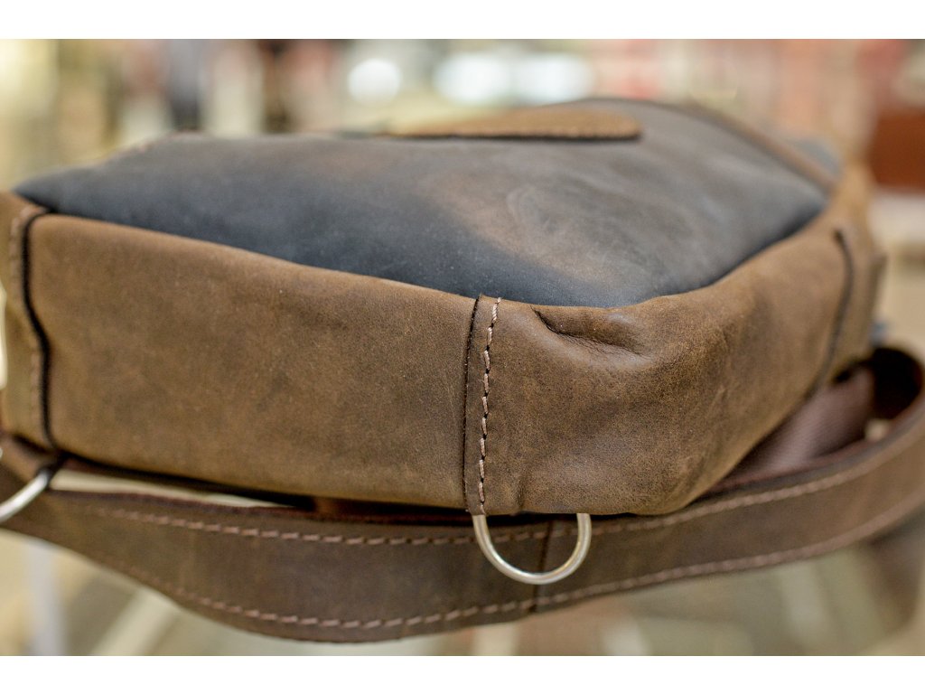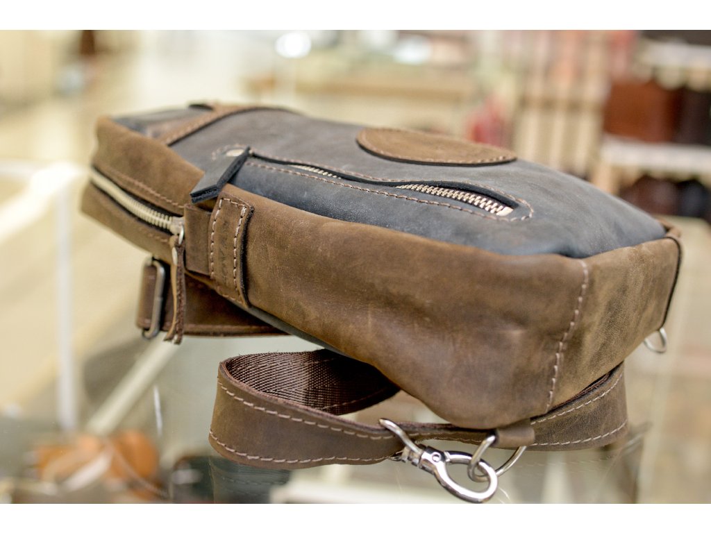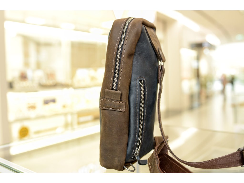 Náprsní taška "SoVan". Kůže "Crazy Horset" tm.modrá/tm.hnědá