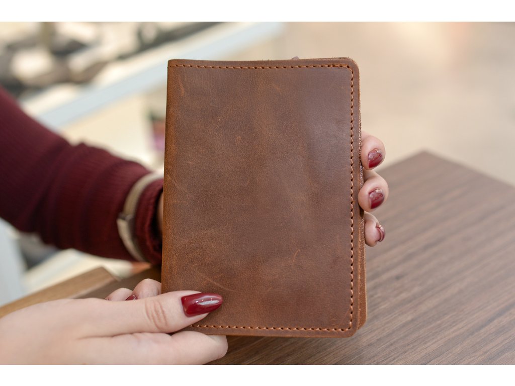 Obal na PAS "Bez reliéfu".. Kůže "Crazy Horse" rezavá