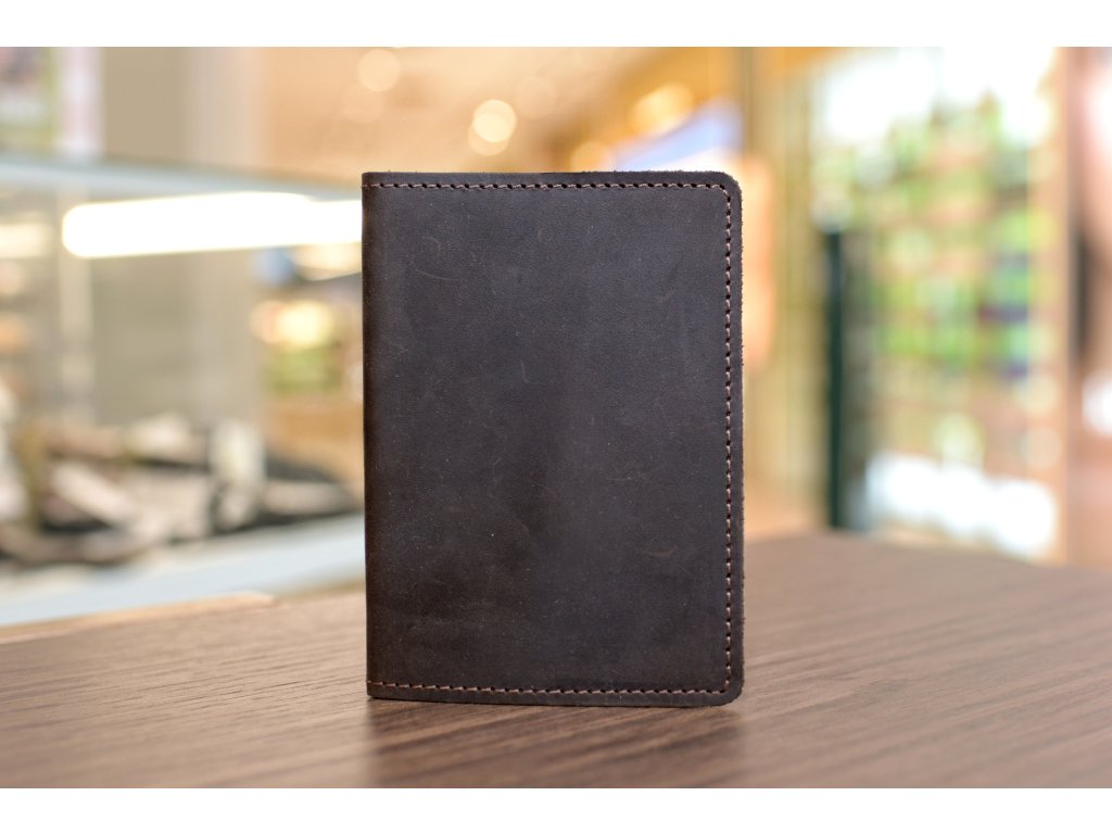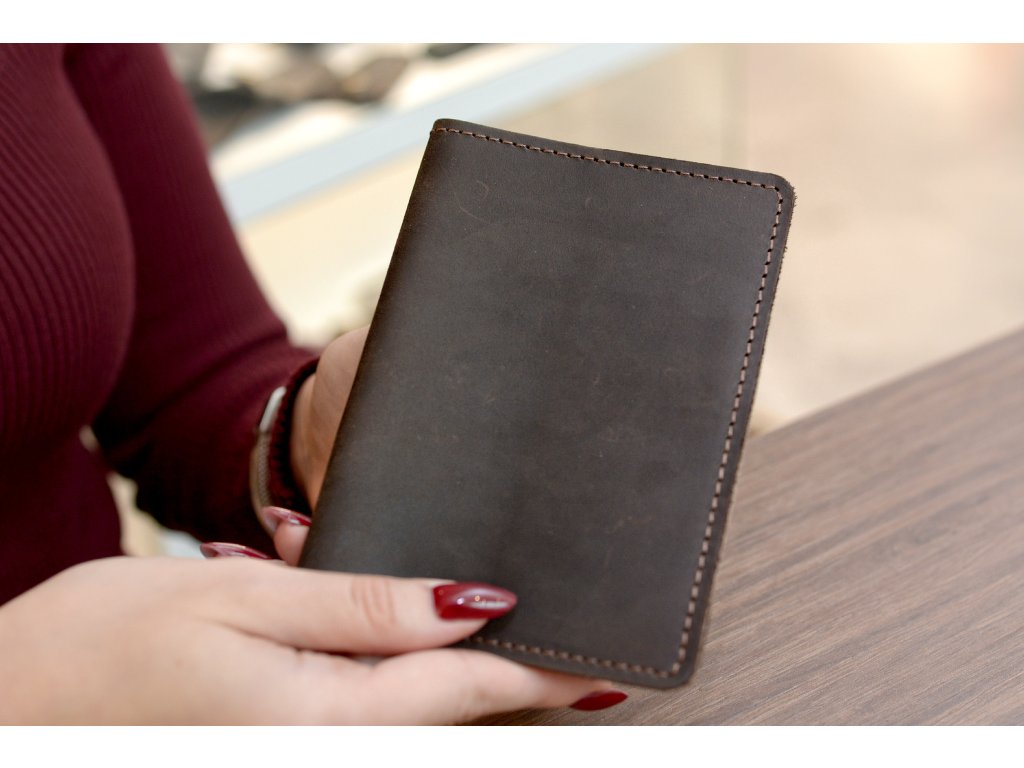Obal na PAS "Bez reliéfu". Kůže "Crazy Horse" tmavě hnědá