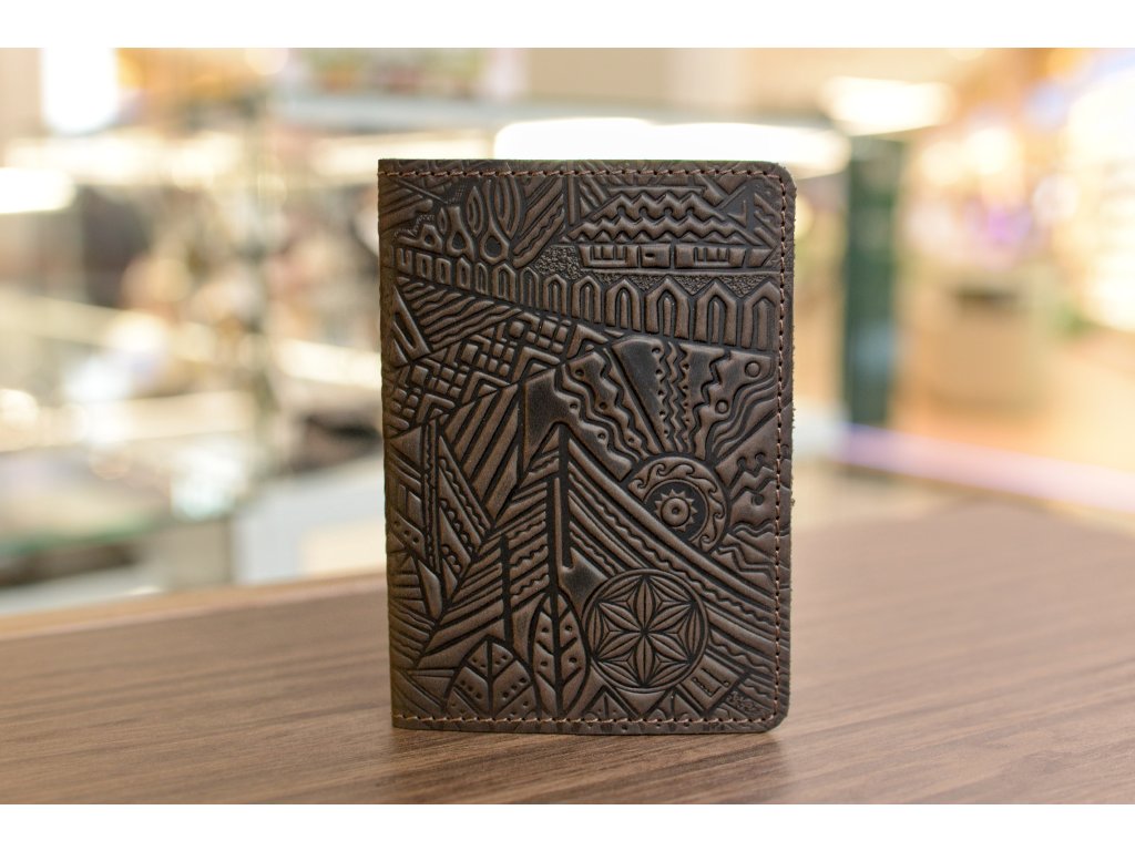 Obal na PAS s reliéfem "KARPATY". Kůže "Crazy Horse" tm.hnědá