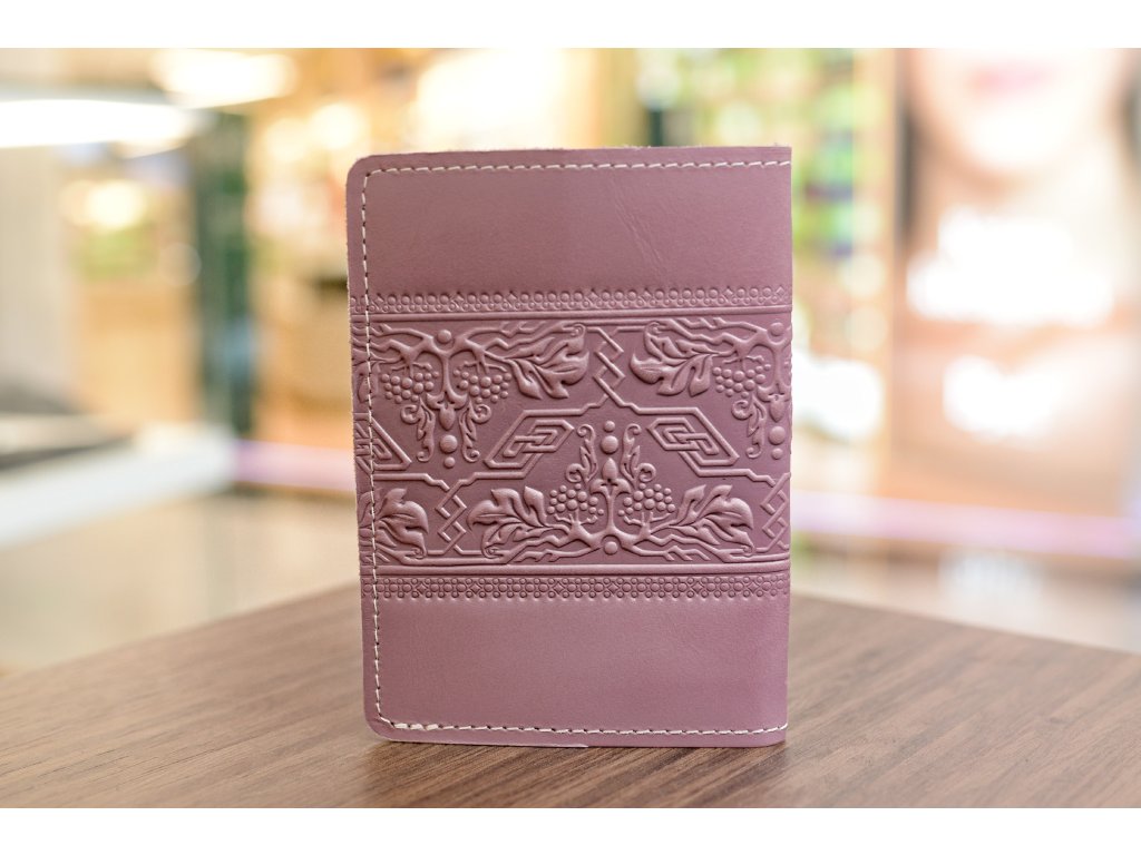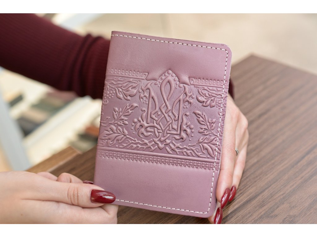 Obal na PAS s reliéfem "Trojzubec-GR". Kůže "Galanterie" lila