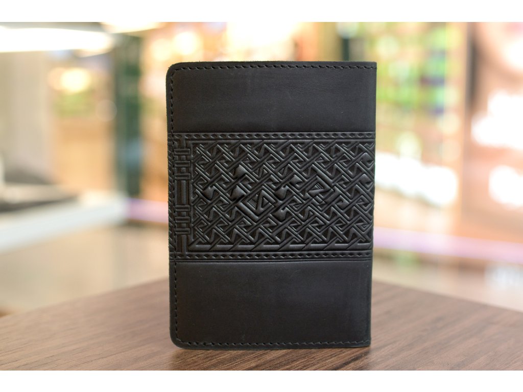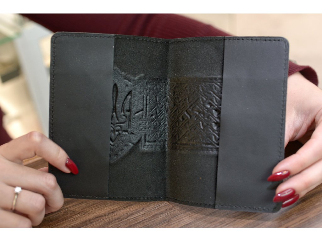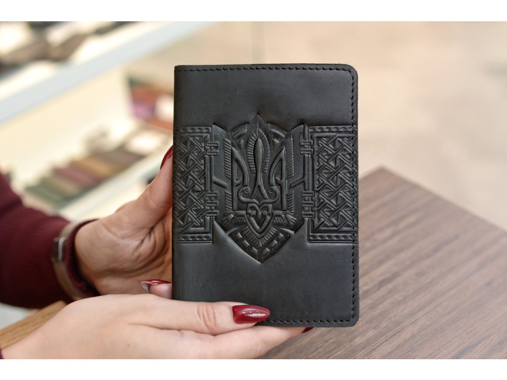Obal na PAS s reliéfem "Trojzubec-výšivka". Kůže "Crazy Horse" černá