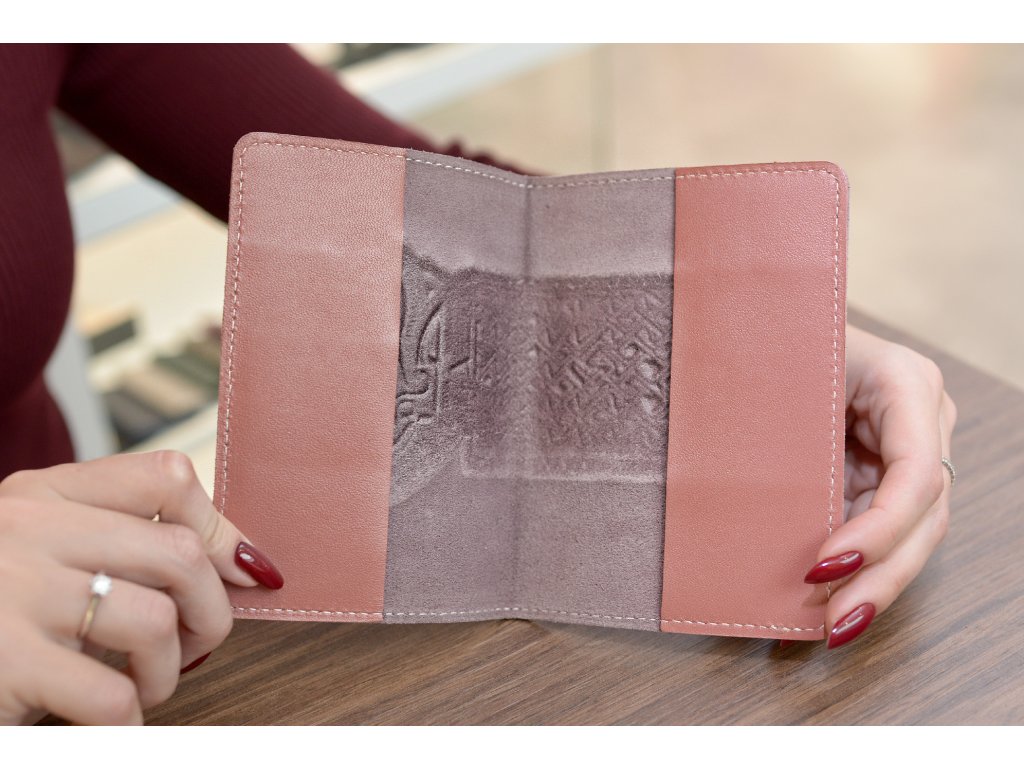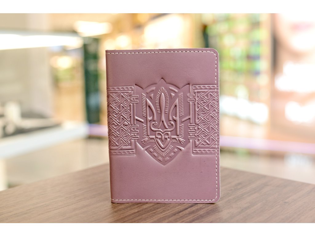 Obal na PAS s reliéfem "Trojzubec-výšivka". Kůže "Galanterie" lila
