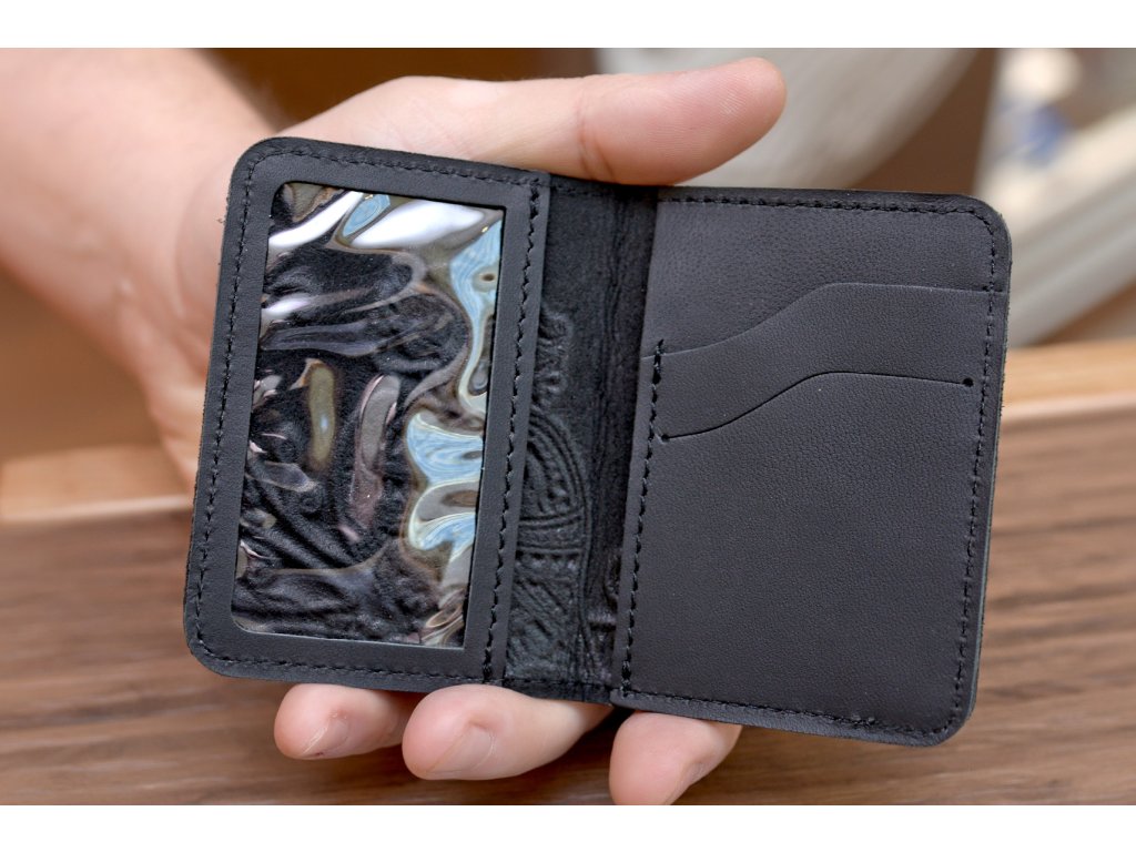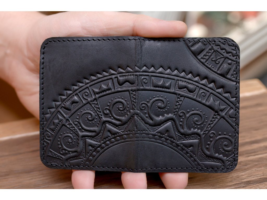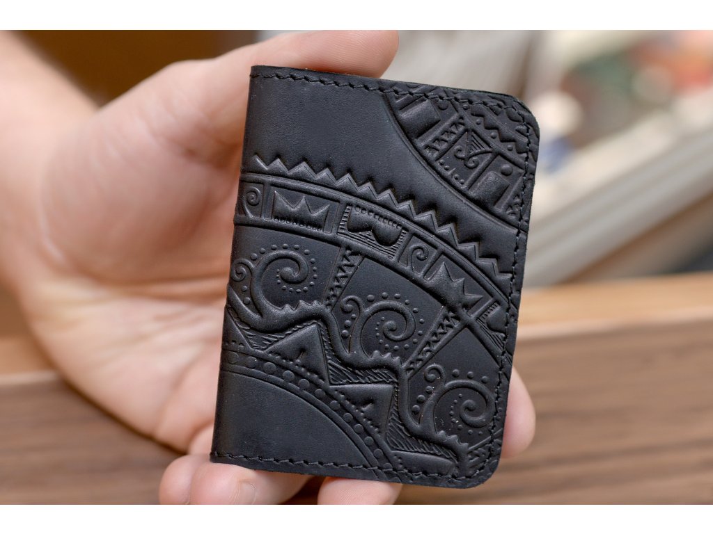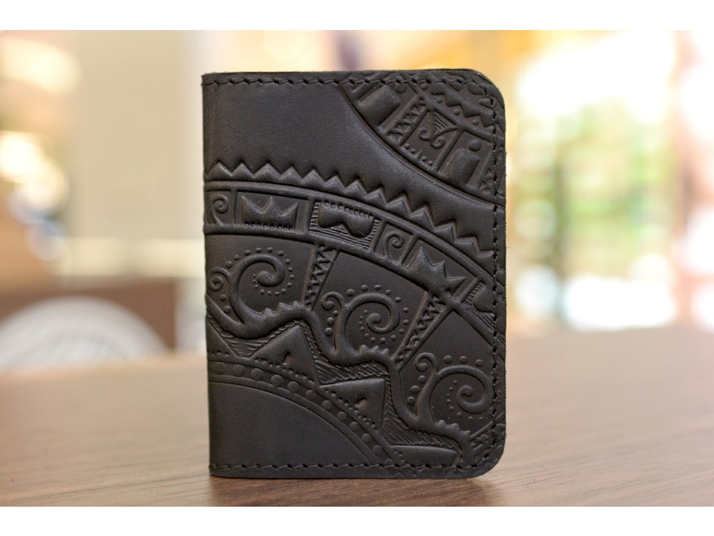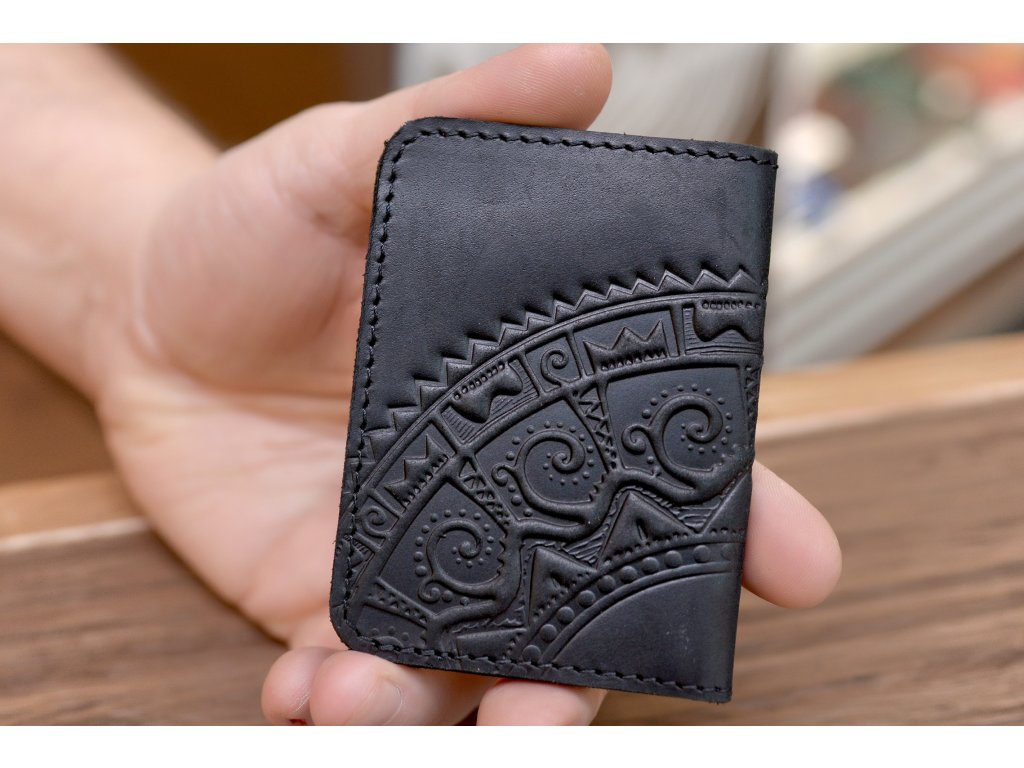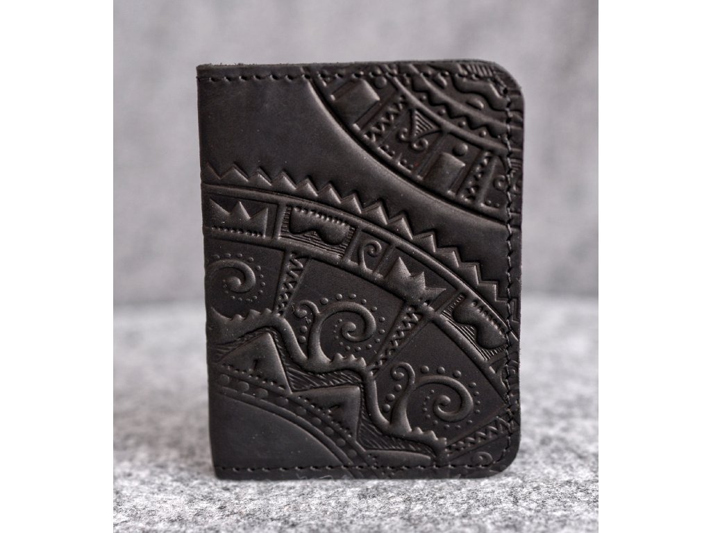 Organizátor na karty ID1+2,5 s reliéfem "Hutsul". Kůže "Crazy Horse" černá
