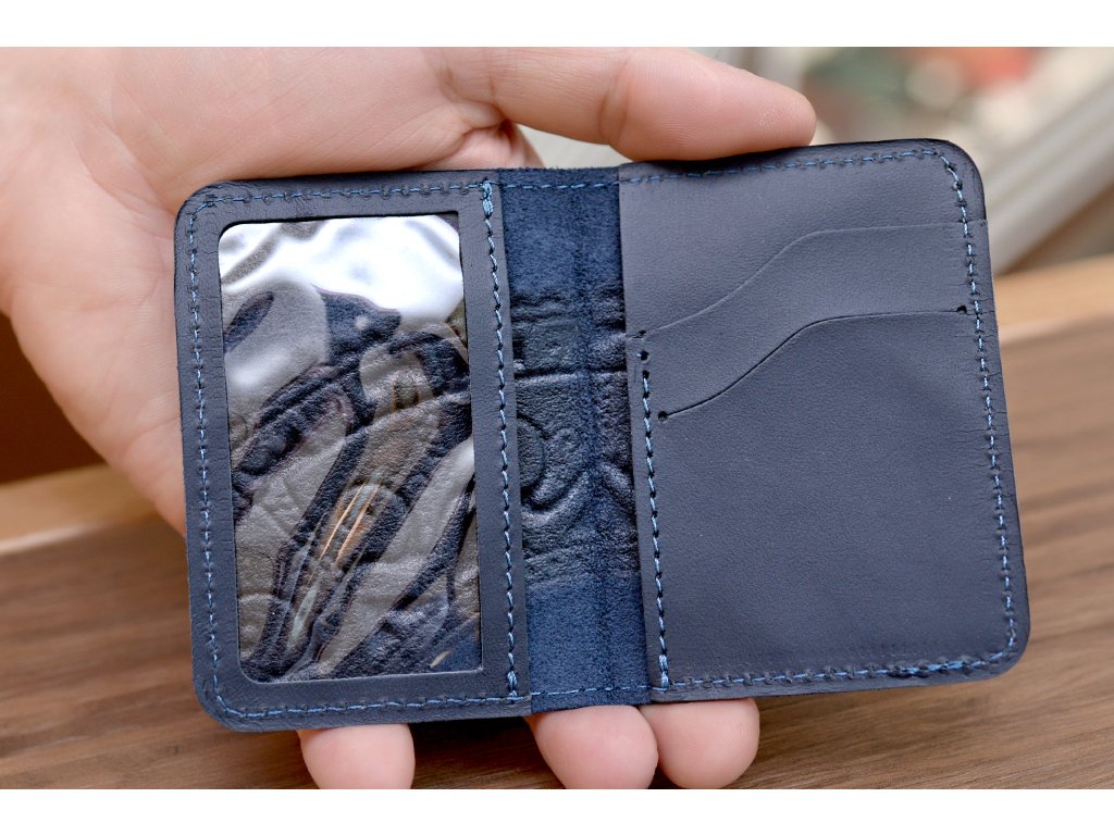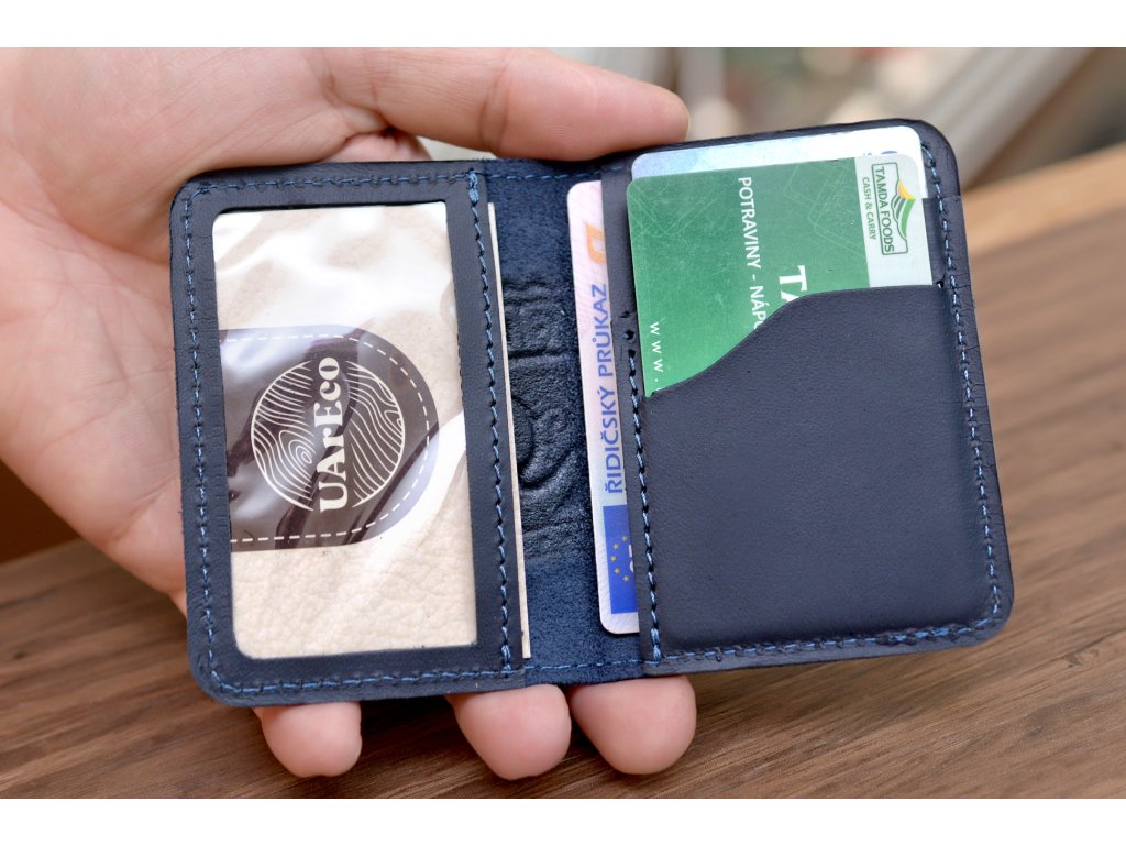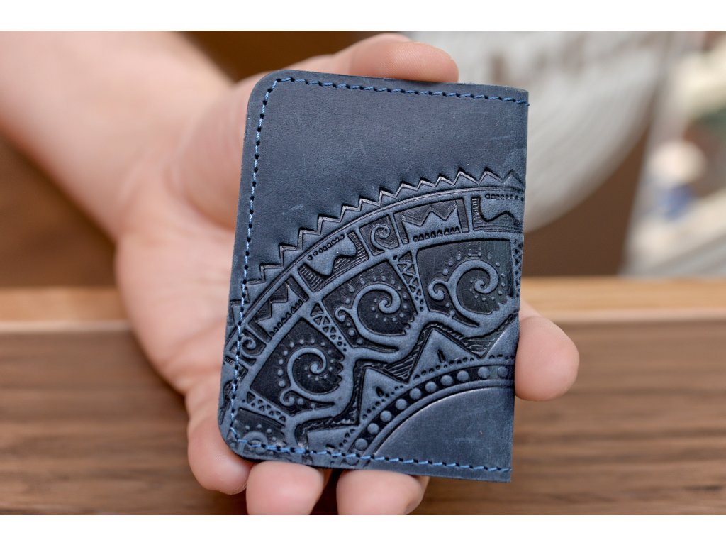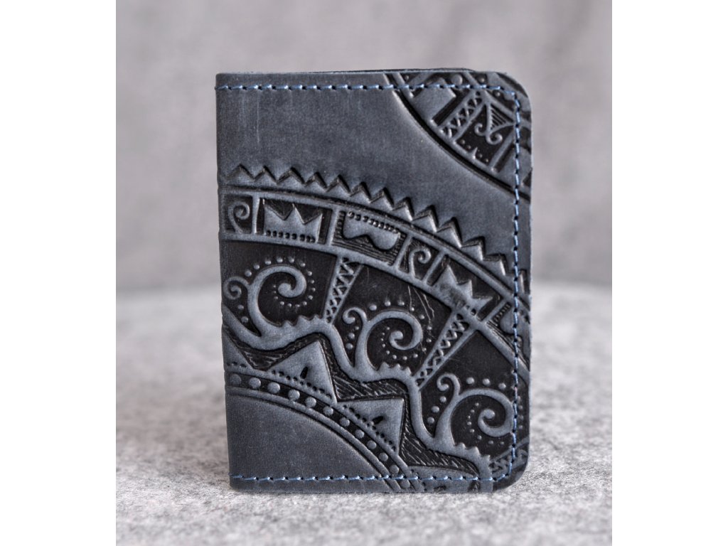 Organizátor na karty ID1+2,5 s reliéfem "Hutsul". Kůže "Crazy Horse" tm.modrá