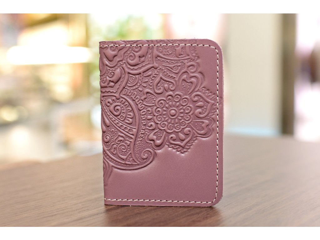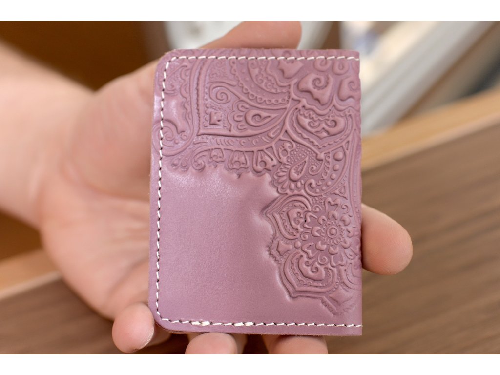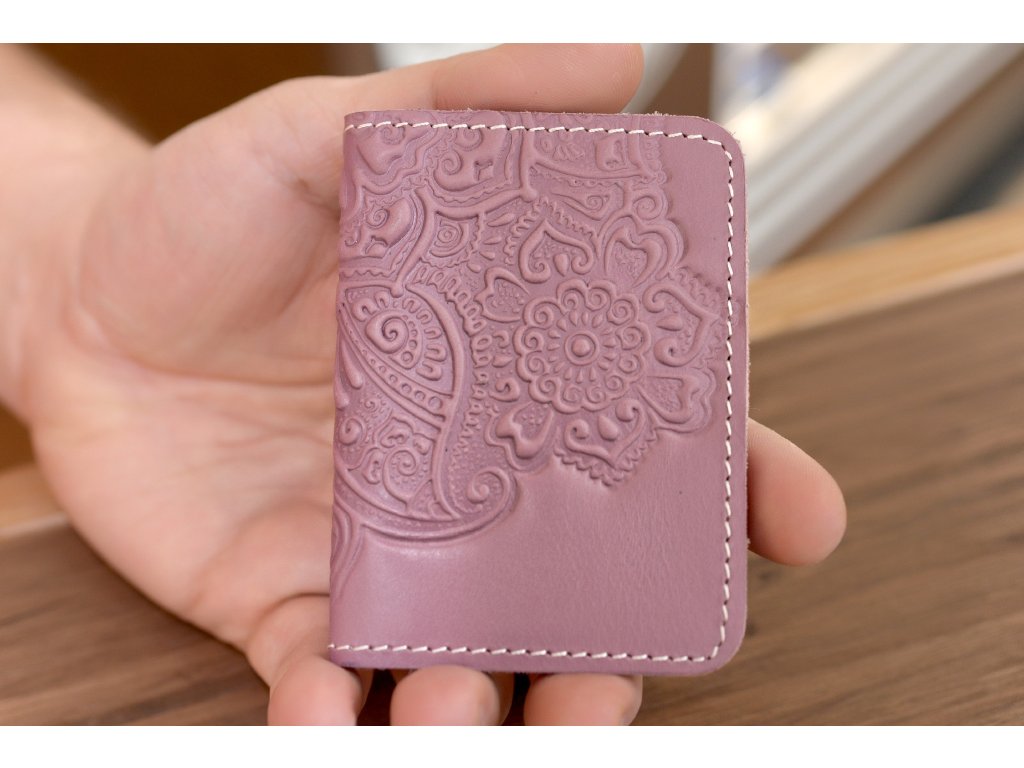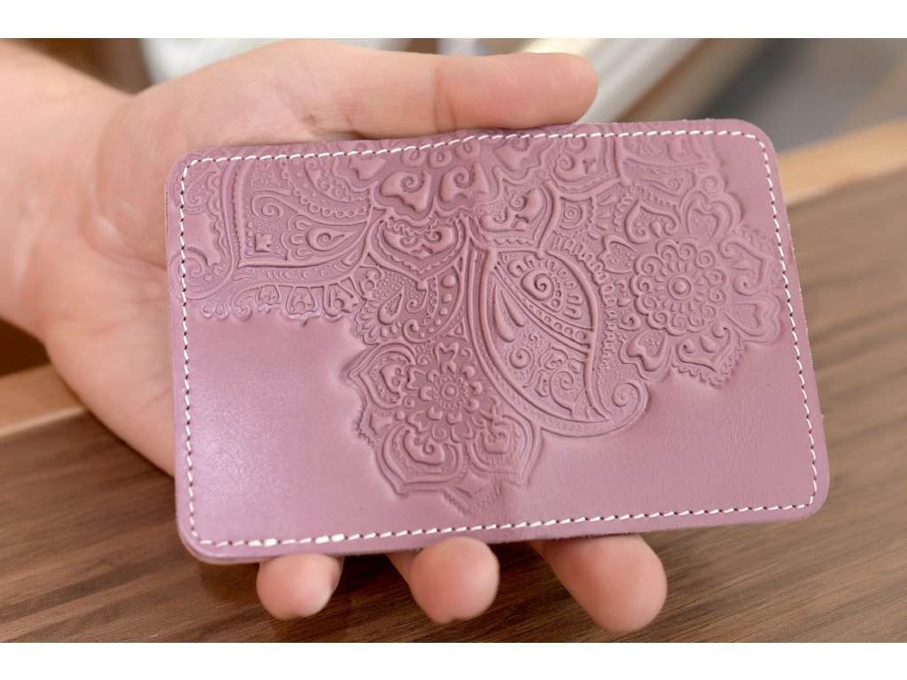 Organizátor na karty ID1+2,5 s reliéfem "Kvetoucí zahrada". Kůže "Galanterie" lila