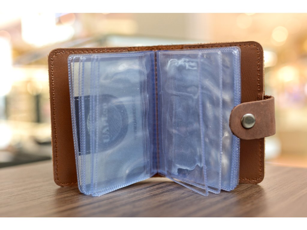 Kožený organizér na doklady z pravé kůže Crazy Horse nabízí až 20 průhledných přihrádek na karty a doklady + 2 další kapsy na dokumenty či bankovky. Elegantní, ručně vyrobený doplněk s dlouhou životností, vhodný pro každodenní použití i na cesty. Pravá kůže bez syntetiky – praktický, odolný a stylový.