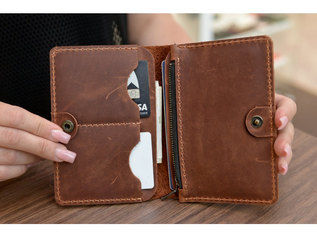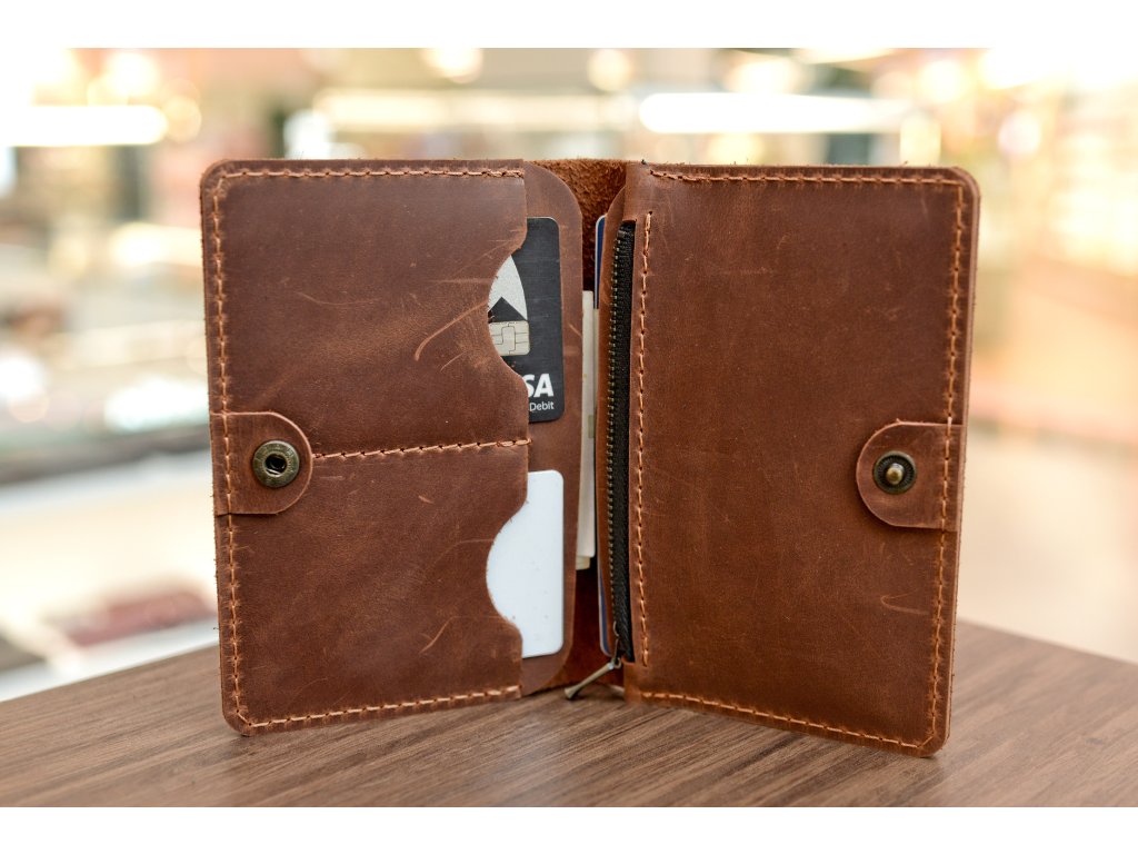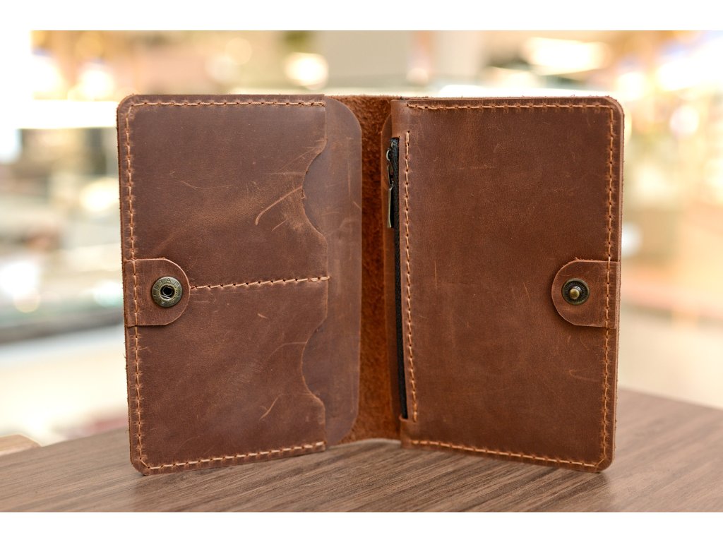 Praktický kožený organizér na pas z hovězí kůže Crazy Horse s ručním zpracováním. Nabízí 2 přihrádky na pasy, kapsu na mince se zipem a sloty na platební karty. Odolný, elegantní a ideální na každodenní cestování.