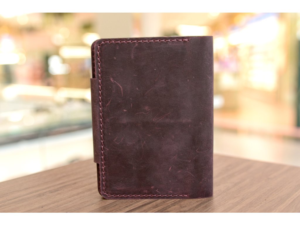 Organizér na 2 dokumenty formátu "PAS" (dvojité zapínání ). Kůže "Crazy Horse" vínová
