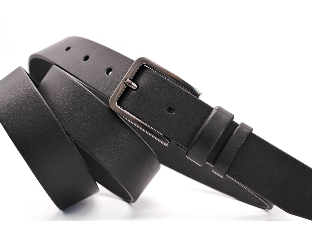 Elegantní kožený pásek z přírodní hovězí kůže s klasickou sponou. Odolný, pohodlný a snadno přizpůsobitelný délce. Šířka 3,5 cm, černá barva. Вhodný pro každodenní nošení i jako dárek.