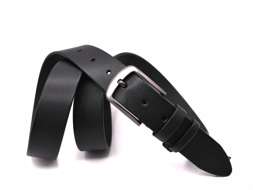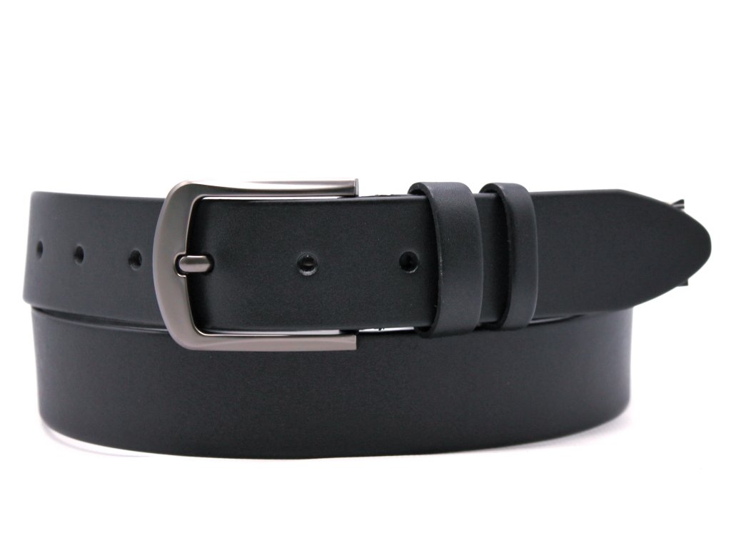 Elegantní kožený pásek z přírodní hovězí kůže s klasickou sponou. Odolný, pohodlný a snadno přizpůsobitelný délce. Šířka 4,0 cm, černá barva. Вhodný pro každodenní nošení i jako dárek.