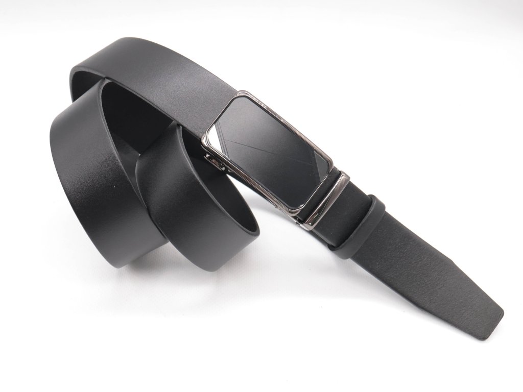 Elegantní kožený pásek z přírodní hovězí kůže s automatickou přezkou. Odolný, pohodlný a snadno přizpůsobitelný délce. Šířka 3,7 cm, černá barva. Вhodný pro každodenní nošení i jako dárek.
