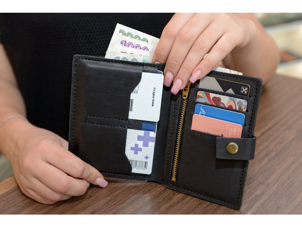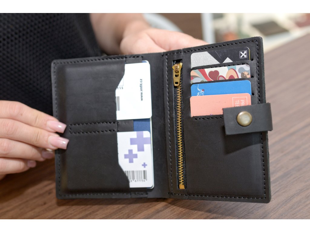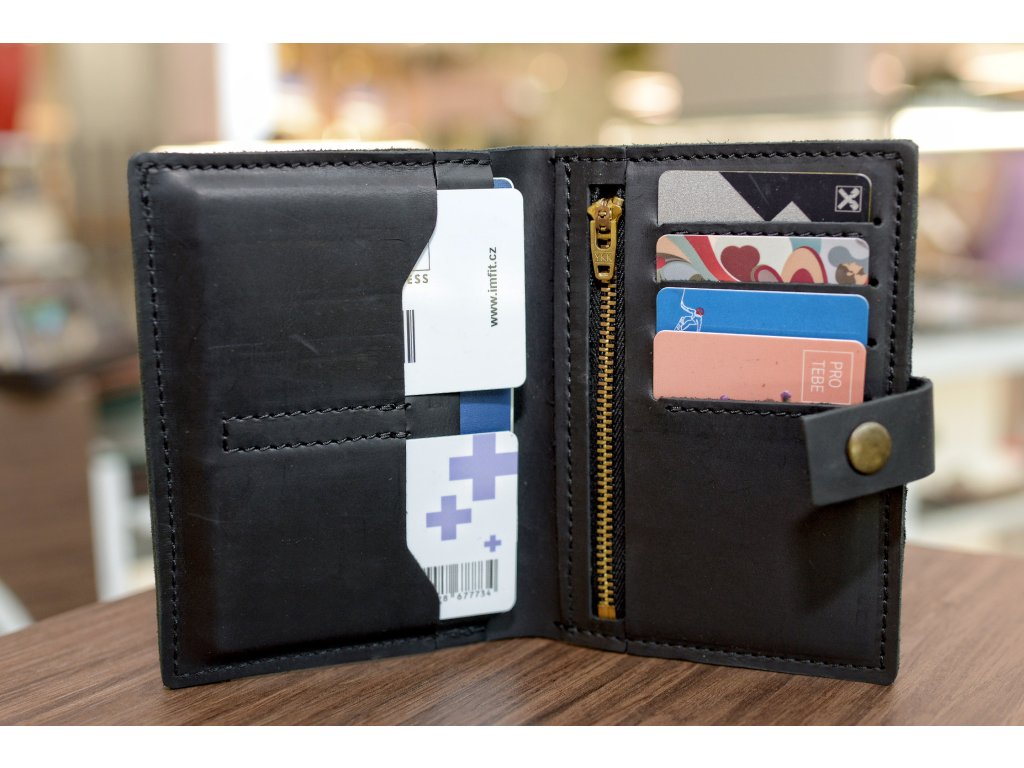 Peněženka 3/4 "PAS". Kůže "Crazy Horse" černá
