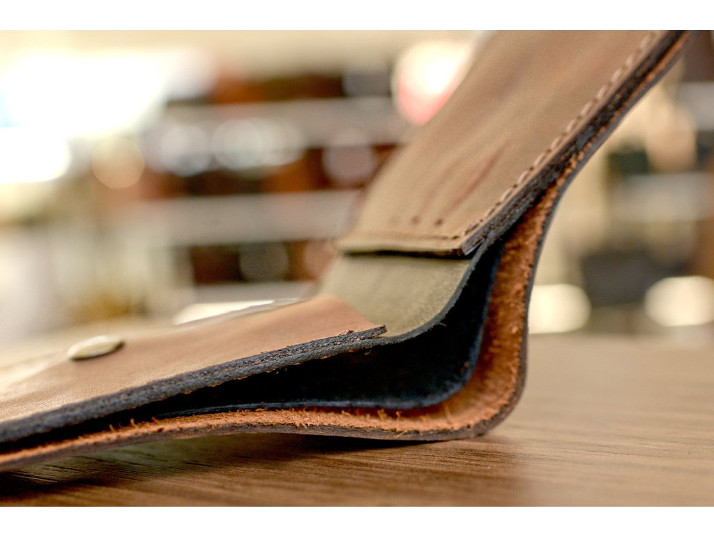 Klasická kožená peněženka BEFOLD "Zaporozi" z proužkem – nadčasový design a prvotřídní kvalita. Vyrobena z prémiové hovězí kůže, nabízí praktické uspořádání se sloty na karty, kapsou na mince a dvěma přihrádkami na bankovky. Ruční výroba zajišťuje jedinečný vzhled a dlouhou životnost. Ideální pro každodenní použití i jako elegantní dárek.