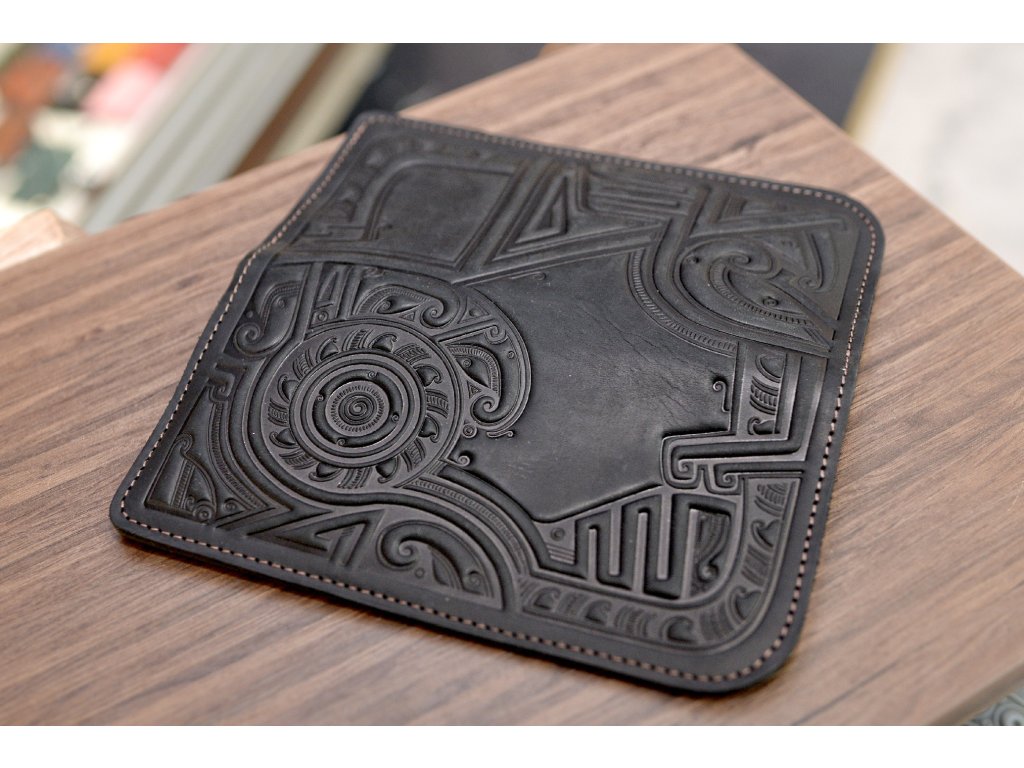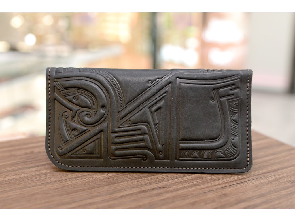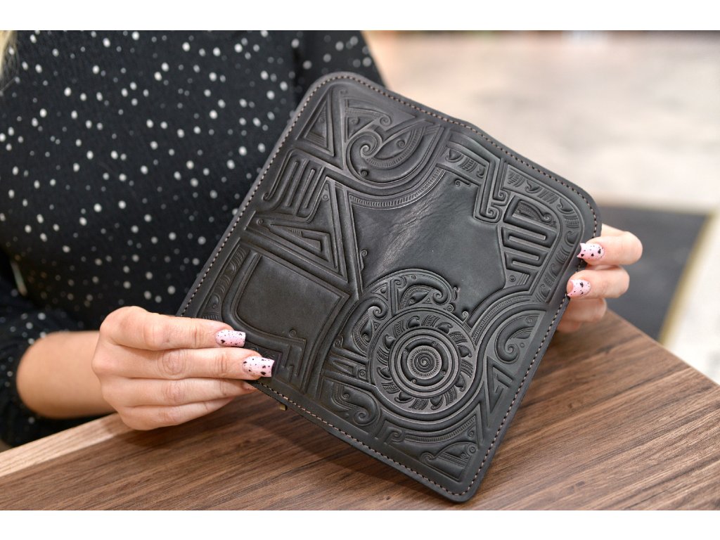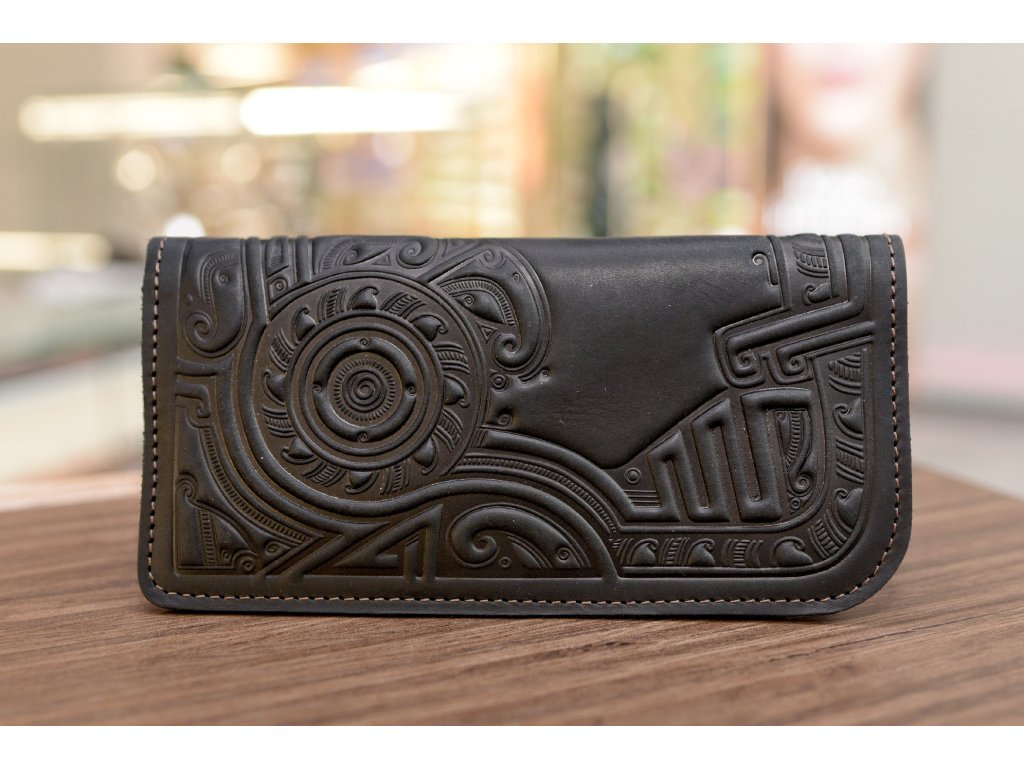 Peněženka-longer "Shpak_M3" s magnety a reliéfem "Běh času". Kůže "Crazy Horse" černá