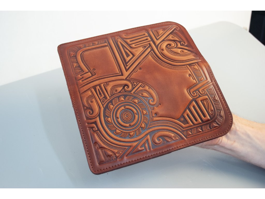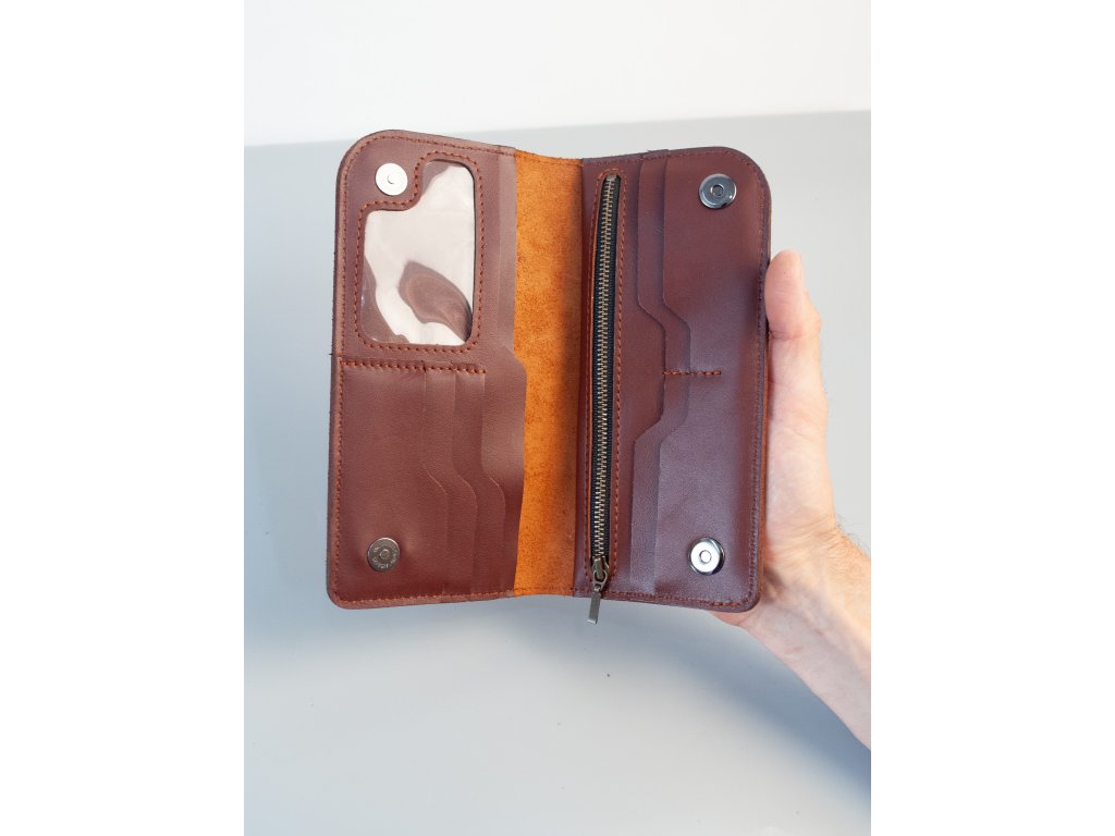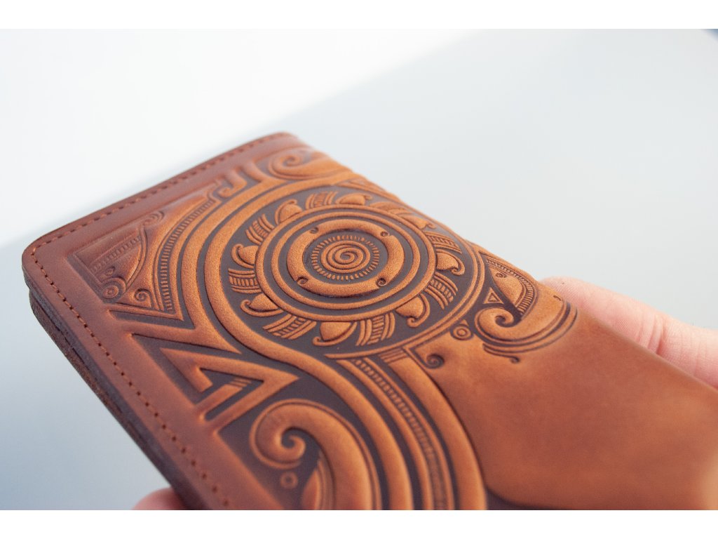 Peněženka-longer "Shpak_M3" s magnety a reliéfem "Běh času". Kůže "Crazy Horse" rezavá