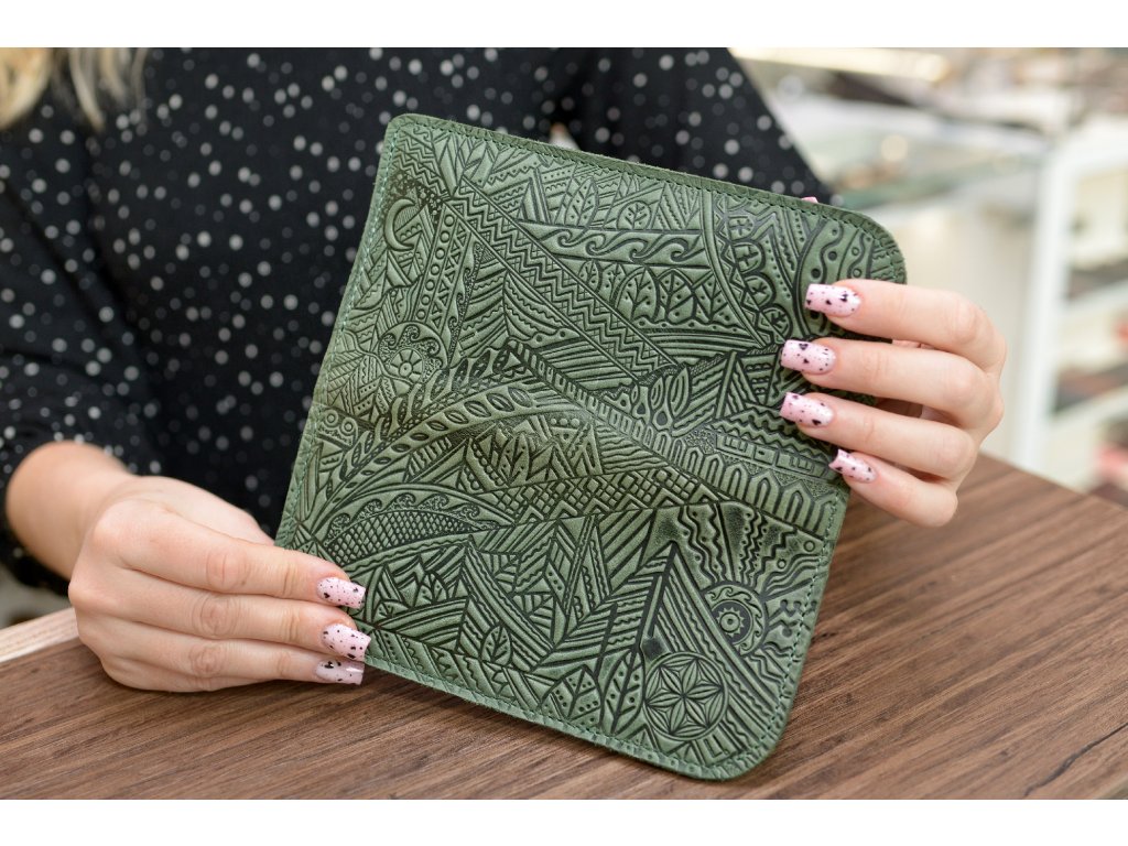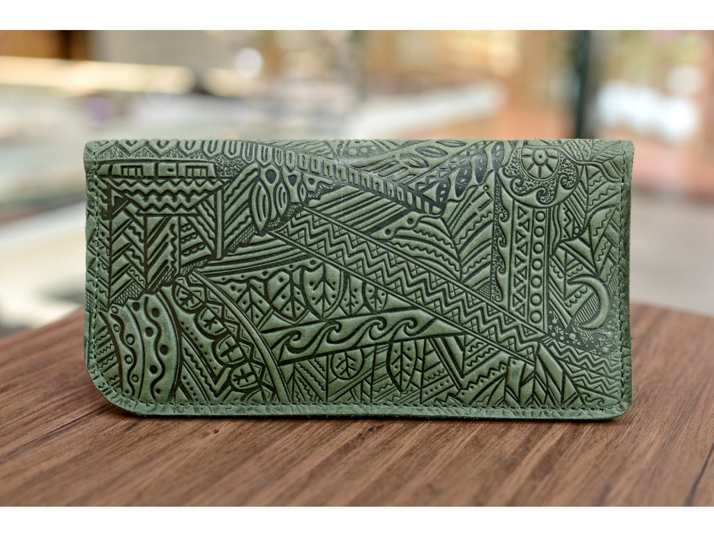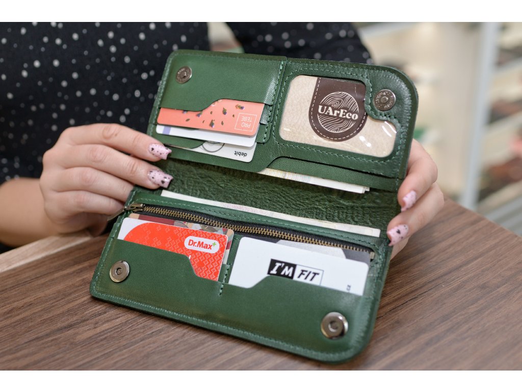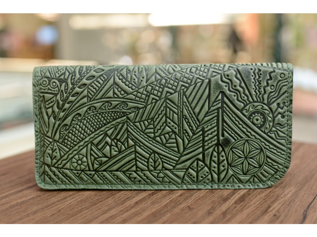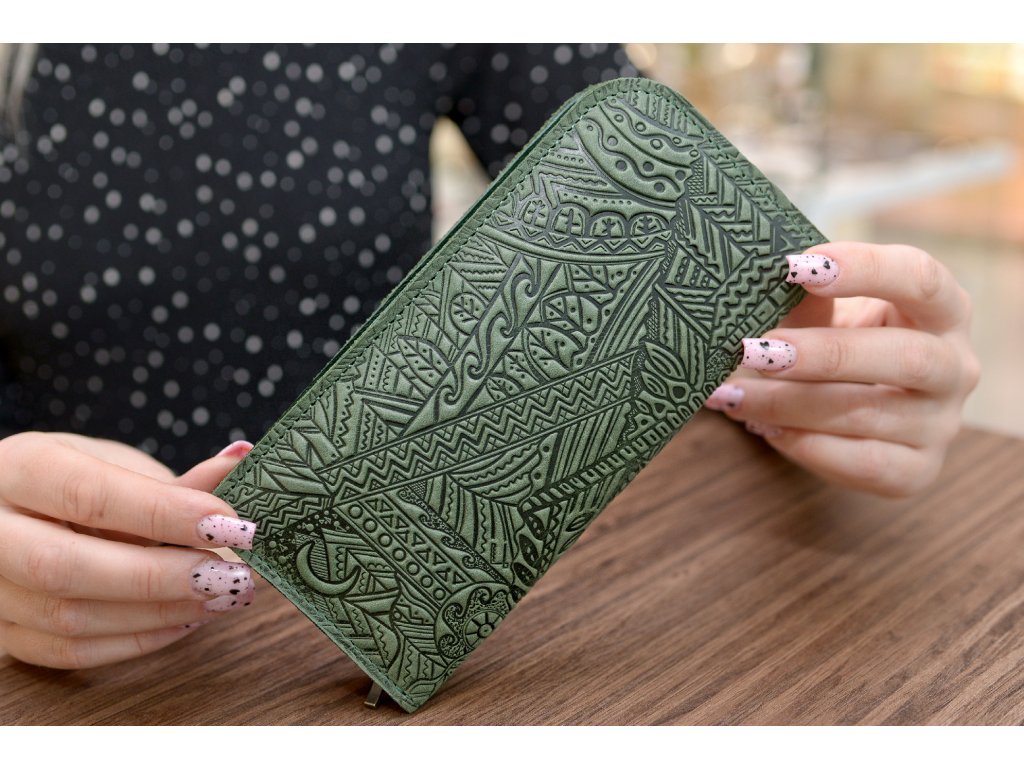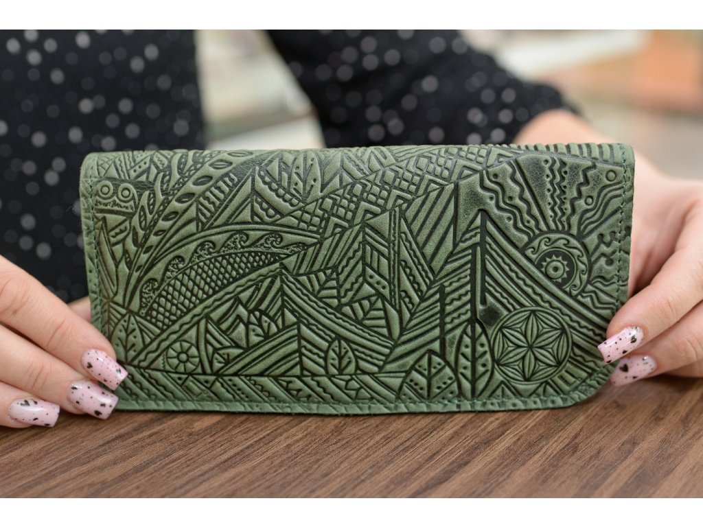 Peněženka-longer "Shpak_M3" s magnety a reliéfem "KARPATY". Kůže "Crazy Horse" smaragdová