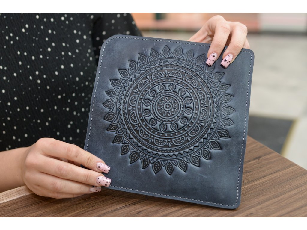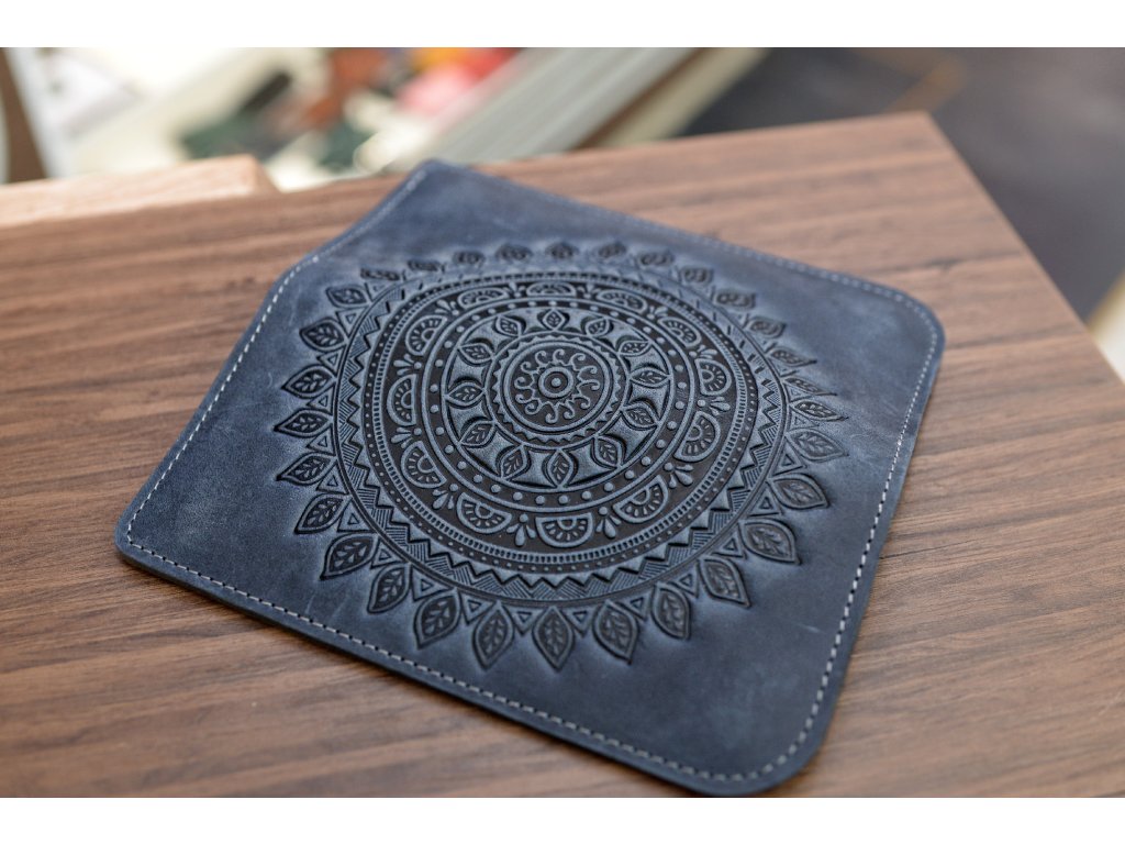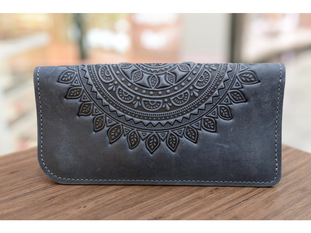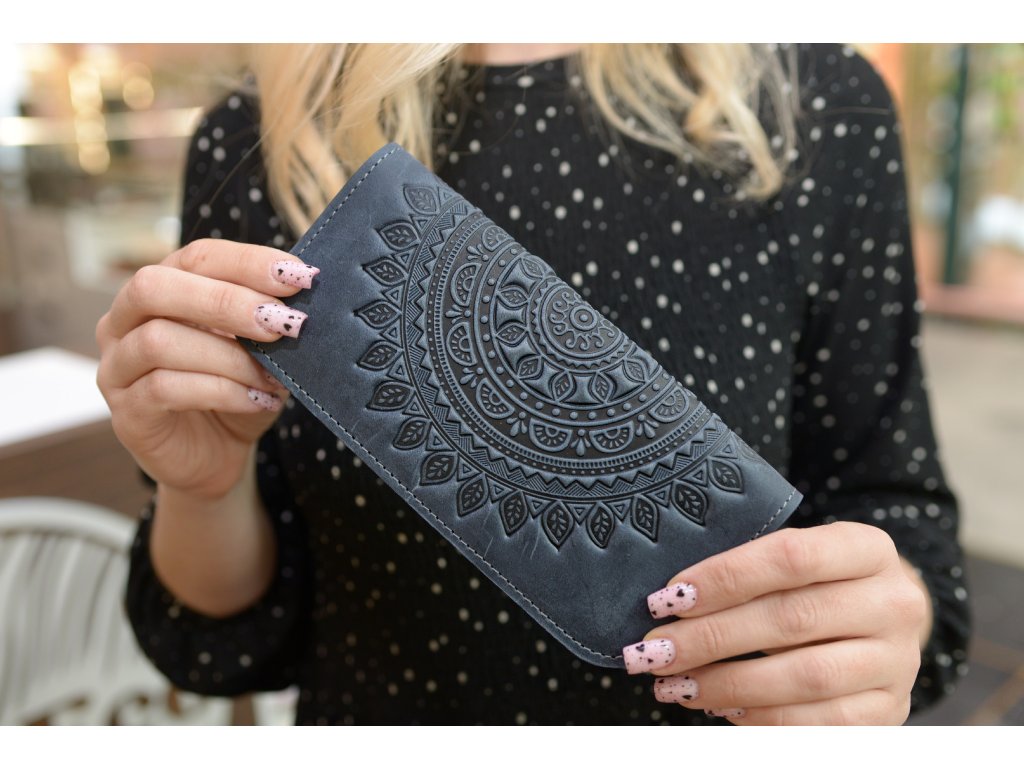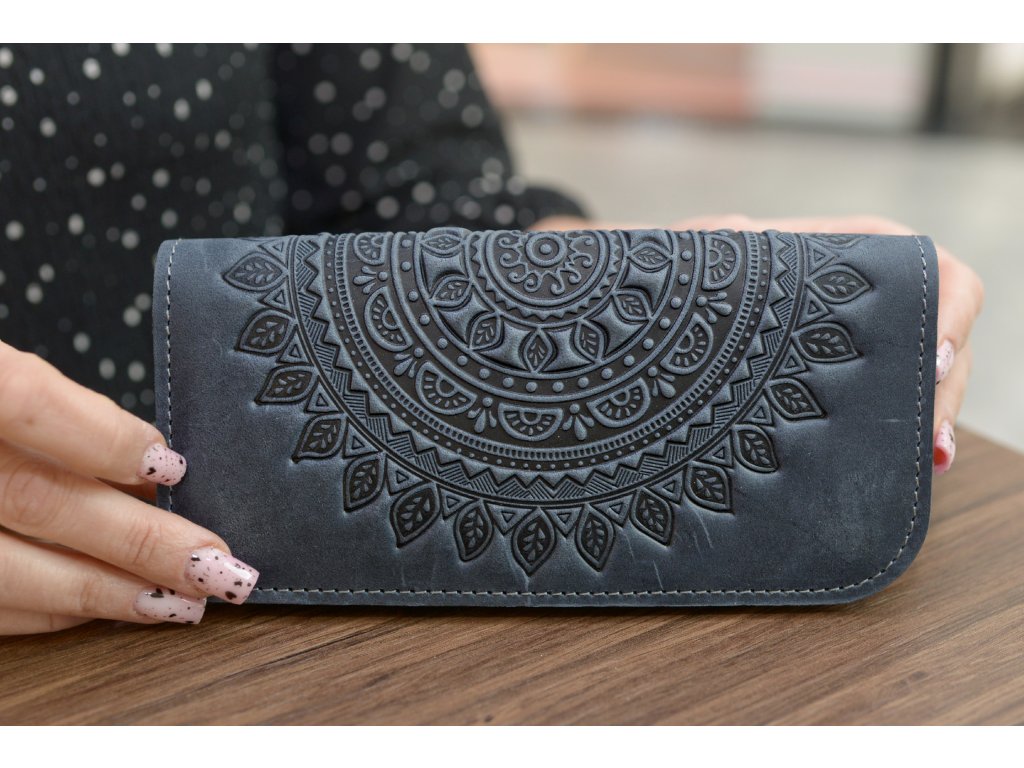 Peněženka-longer "Shpak_M3" s magnety a reliéfem "MANDALA". Kůže "Crazy Horse" tm.modrá