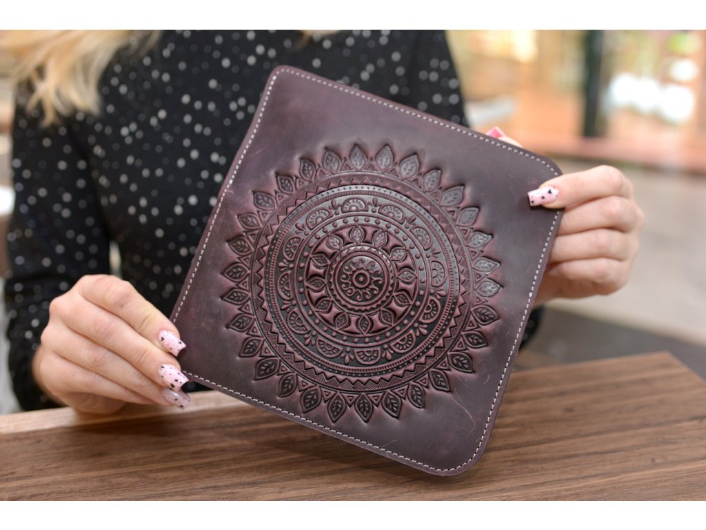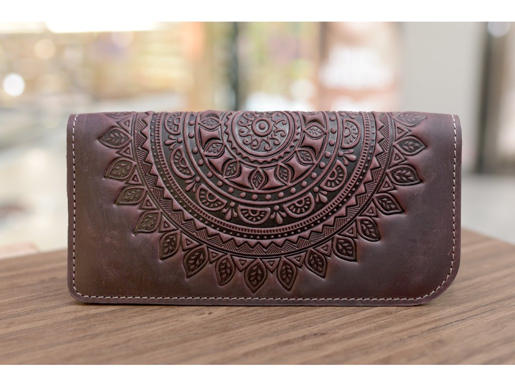 Peněženka-longer "Shpak_M3" s magnety a reliéfem "MANDALA". Kůže "Crazy Horse" vínová