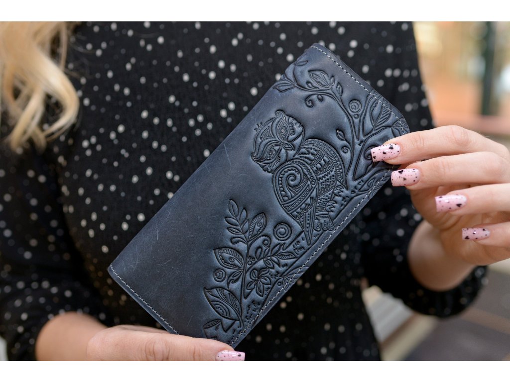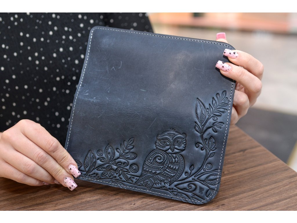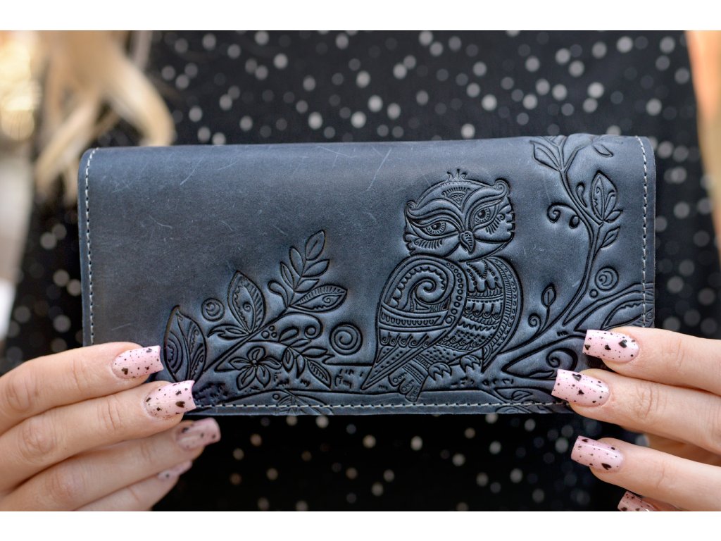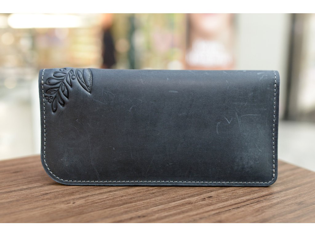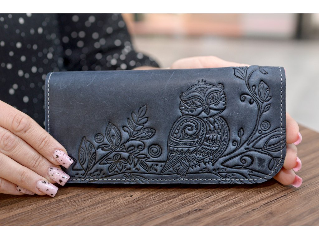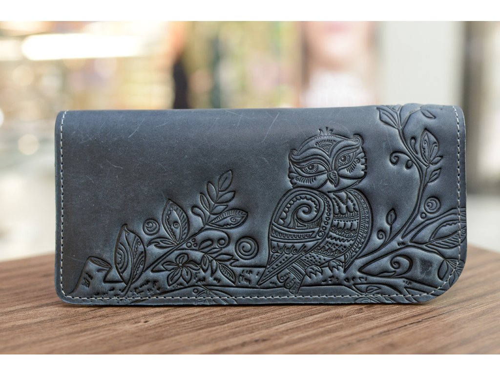Peněženka-longer "Shpak_M3" s magnety a reliéfem "Sovička". Kůže "Crazy Horse" tm.modrá