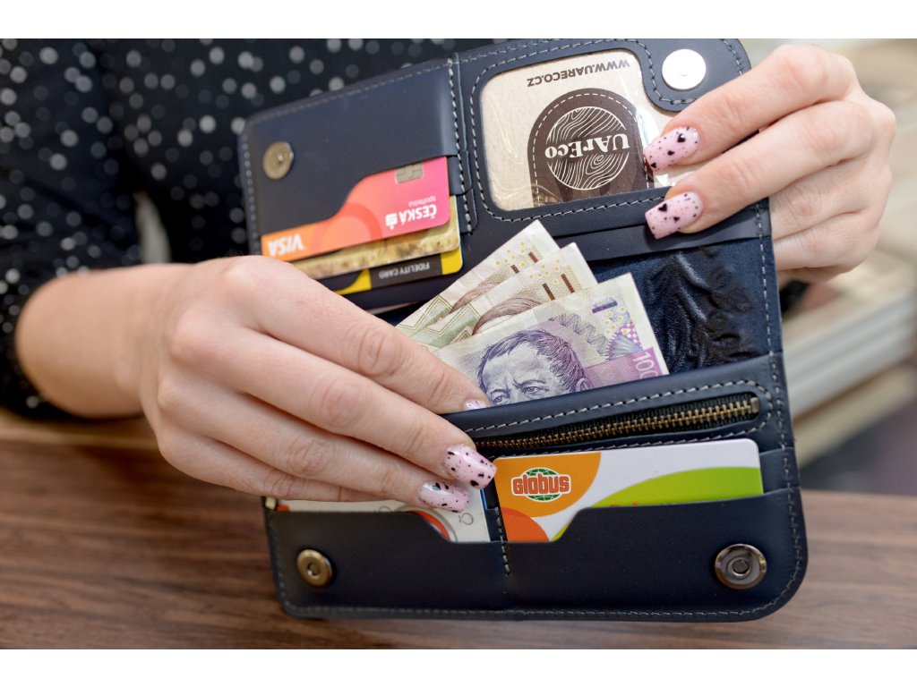 Promyšlené rozvržení kapes umožňuje pohodlně uspořádat bankovky, karty a mince. - Design: