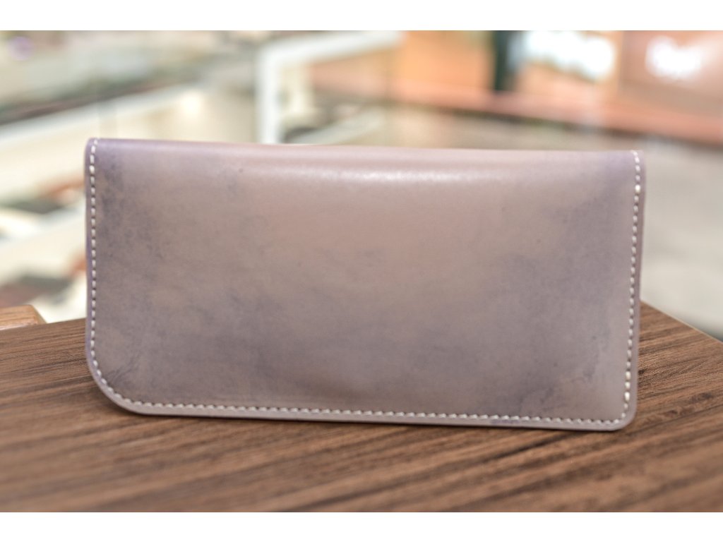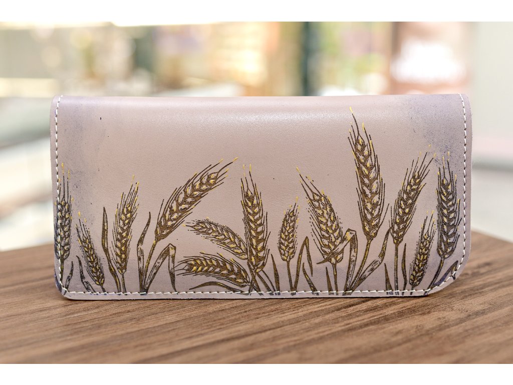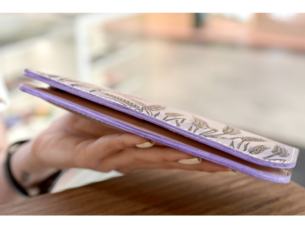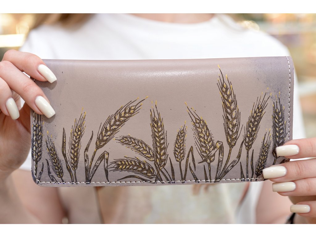 Peněženka-longer "Shpak_M3" s magnety a gravírování "Spikelet". Kůže "Galanterie" lila