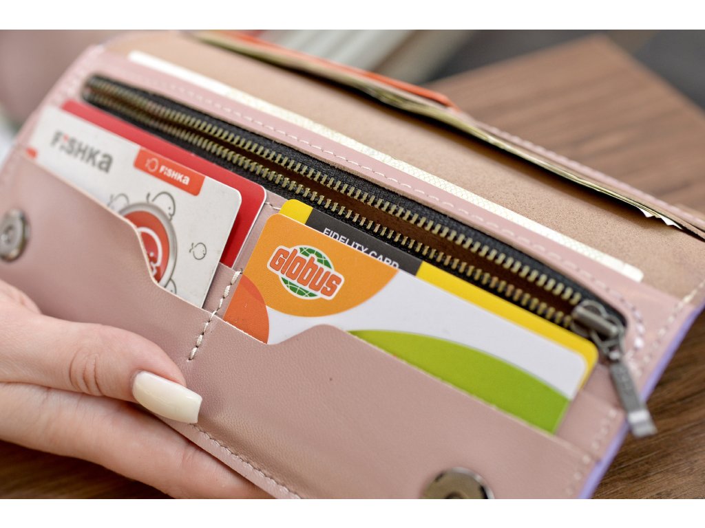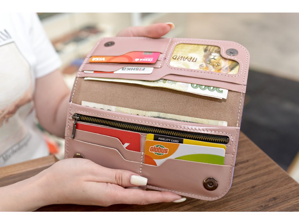 Promyšlené rozvržení kapes umožňuje pohodlně uspořádat bankovky, karty a mince. - Design: