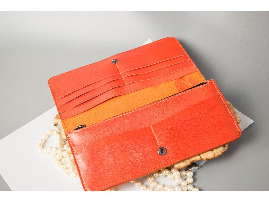 Peněženka-longer "Shpak" s reliéfem "Sovička". Kůže "Crazy Horse" oranžová