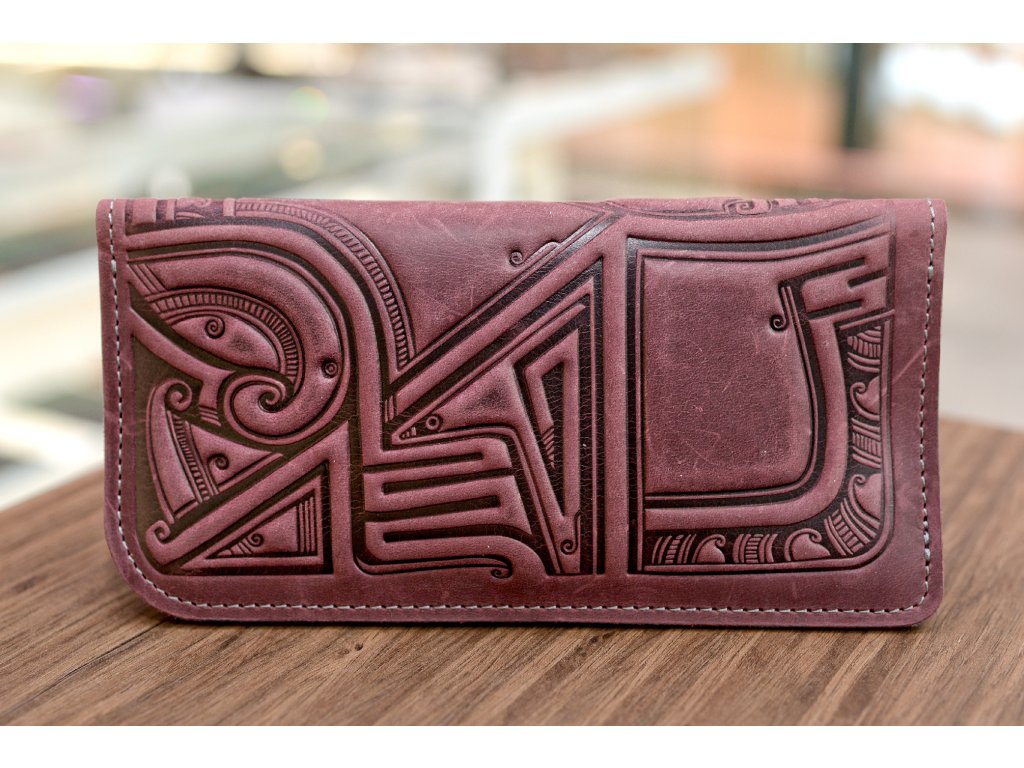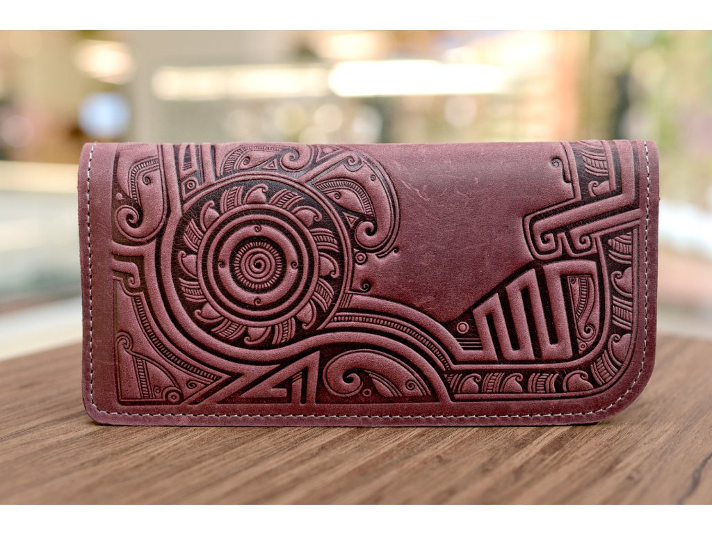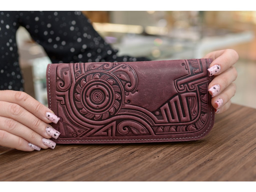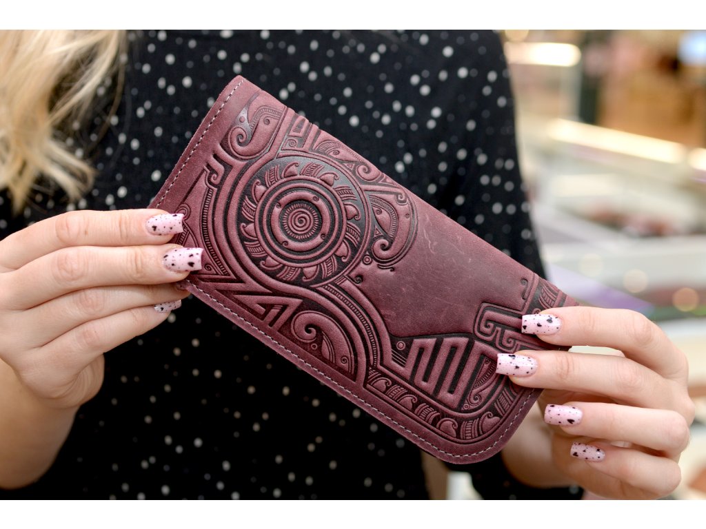 Peněženka-longer "Shpak_M3" s magnety a reliéfem "Běh času". Kůže "Crazy Horse" vínová