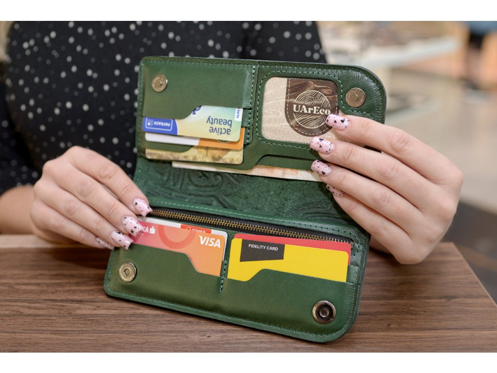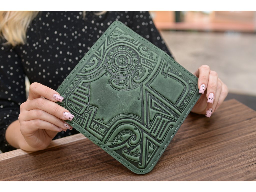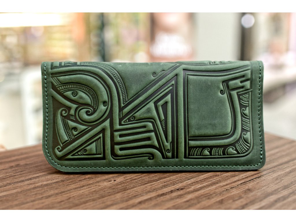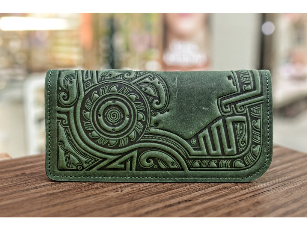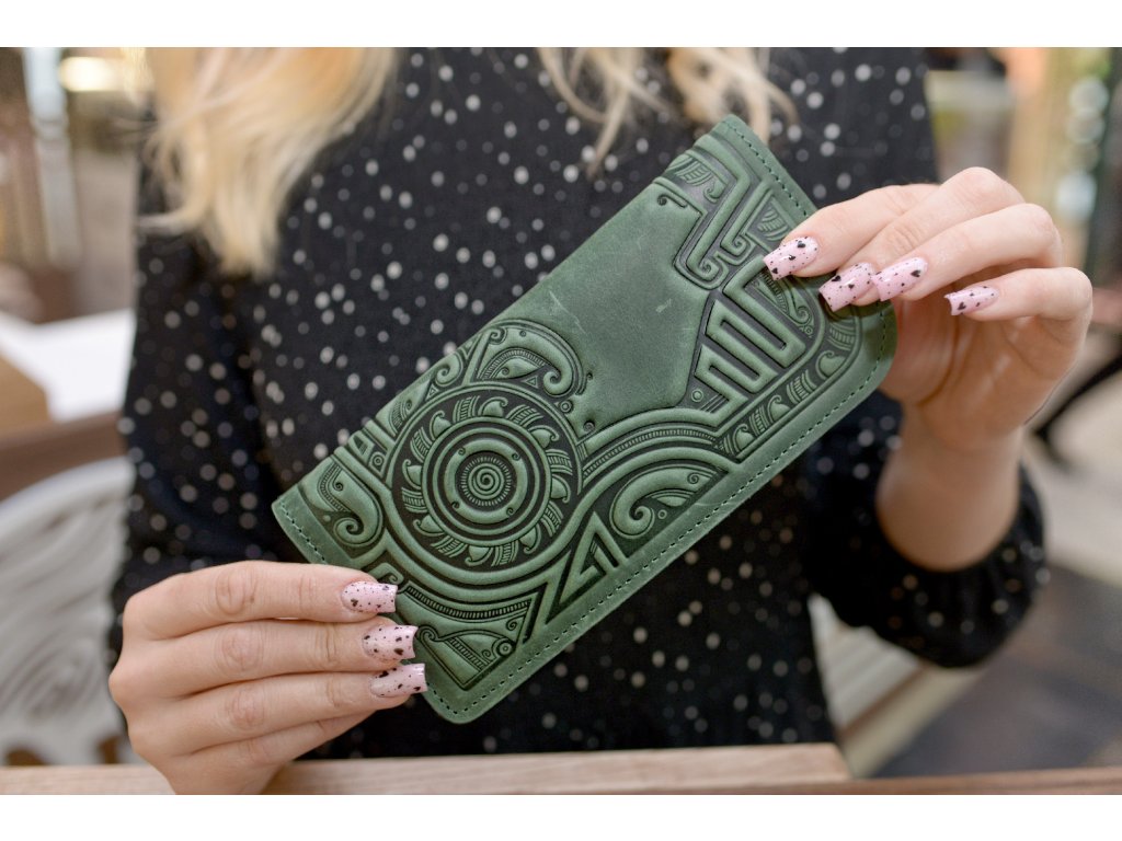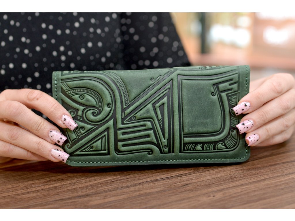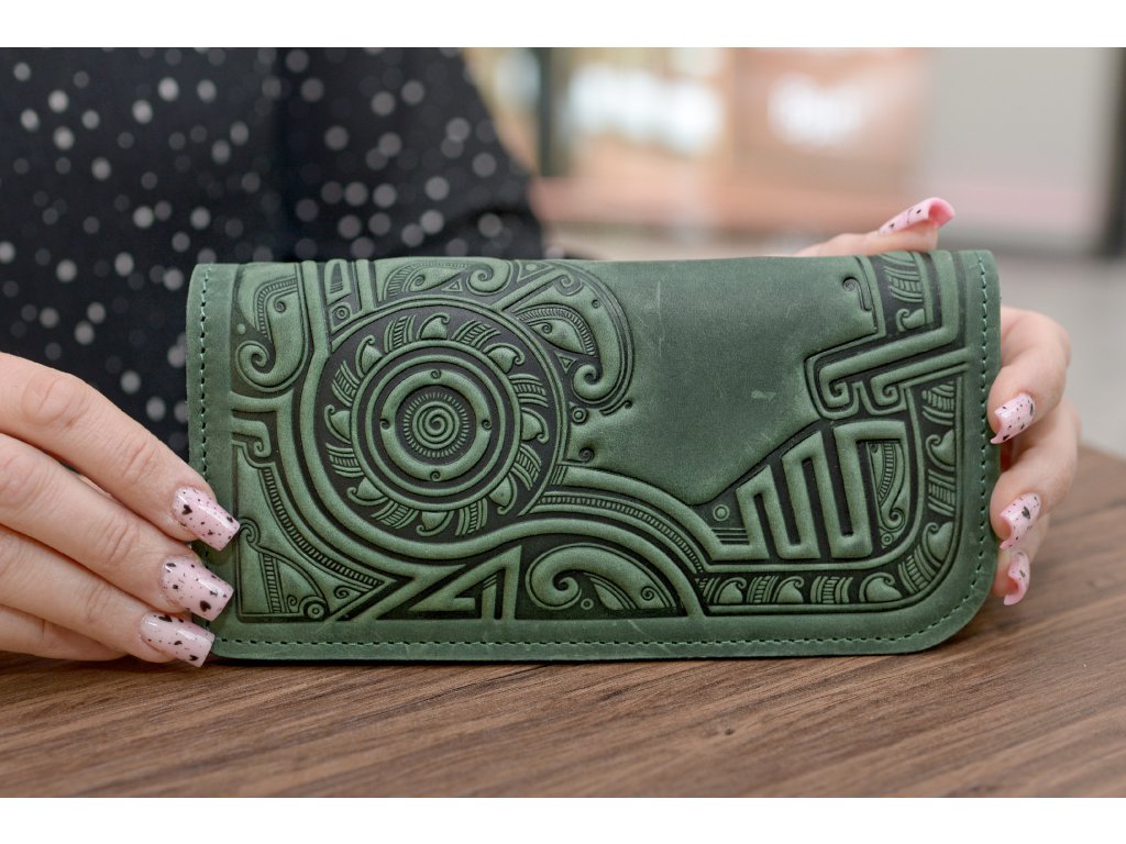 Peněženka-longer "Shpak_M3" s magnety a reliéfem "Běh času". Kůže "Crazy Horse" smaragdová