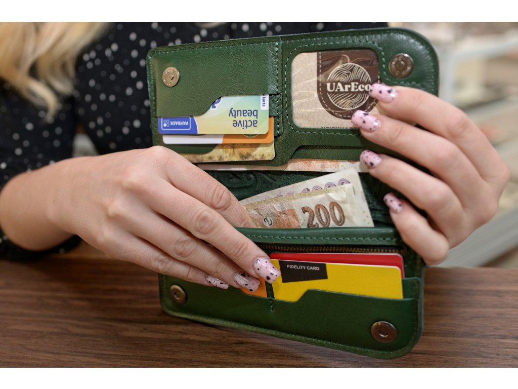 Promyšlené rozvržení kapes umožňuje pohodlně uspořádat bankovky, karty a mince. - Design: